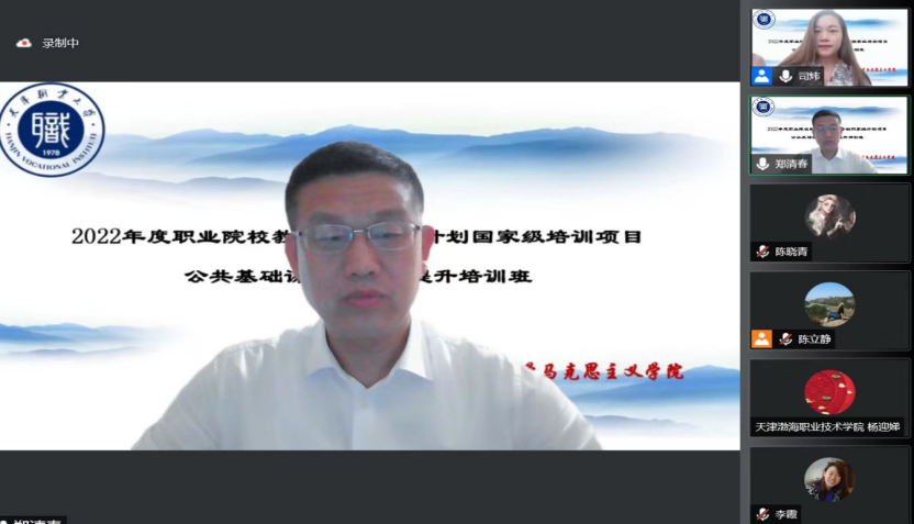 7月1日下午,在庆祝中国共产党成立101周年之际,best365英国在线体育官网校长郑清春深入马克思主义学院国培项目培训班,在线为培训学员作了题为“‘课程思政’与‘思政课程’建设的思考”专题讲座。马克思主义学院党总支书记主持会议,国培项目培训班全体学员及best365思政课教师代表参加了会议。