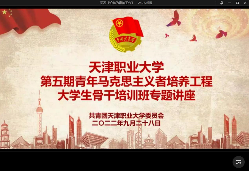 中央党史和文献研究院编辑的习近平同志《论党的青年工作》是团员青年和青年工作者在共青团成立一百周年之际收到的珍贵礼物,为深入学习习近平总书记关于做好新时代党的青年工作重要论述,校团委坚持以组织化学习为基本形式,以团支部为基本单元,广泛发动学生会组织等开展学习。9月28日校团委邀请best365马克思主义学院贾晶老师通过线上会议的形式为第五期“青马工程”大学生骨干培训班学员、团学骨干和团支部书记代表300余人开展专题讲座。