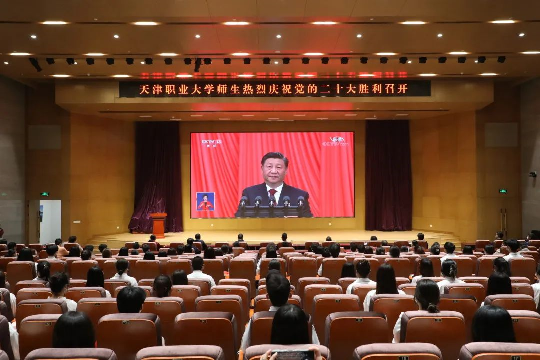 学校党委高度重视,精心部署,全校党员干部师生把收听收看党的二十大开幕会盛况作为一项重要的政治任务,落实到每一个基层支部、每一位党员、每一位师生。10月16日上午10:00,学校召开校党委理论学习中心组学习(扩大)会议,校党委副书记、校长郑清春,校党委副书记王海龙,副校长刘石英、李树岭、杨荣敏,校纪委书记唐勇,及校党委理论学习中心组成员、部分学院处级领导干部、机关各部门科级及以上领导干部和优秀学生代表们一起,在主校区和海河园校区两个报告厅,集中观看了党的二十大开幕会。市教委法制处陶涛同志,莅临海河园报告厅现场,与best365师生共同收看了盛会实况。best365各基层党委、党总支积极组织师生员工利用电视、网络、广播等各种媒体,以多种形式认真收听收看党的二十大开幕盛况,使广大师生党员在第一时间了解和把握大会精神。