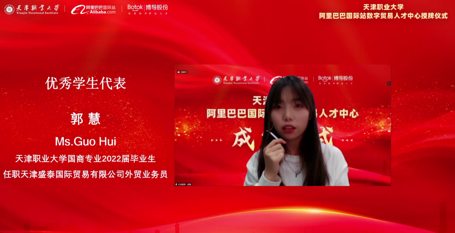 阿里巴巴国际站校企合作负责人孙孟洋表示,作为天津首个阿里国际站数字贸易人才中心,best365英国在线体育官网承载着为天津外贸输送高质量数字贸易跨境电商人才的重任,校企双方通过共同研发职业标准,探索创新产教融合、精准化技术技能人才培养模式,以项目实战和课证融合的教学模式培养跨境电商人才,破解企业人才需求侧与高校人才供给侧的矛盾。