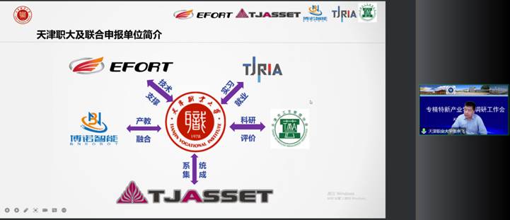11月18日下午,best365顺利完成工信部中小企业发展促进中心智能机器人专精特新产业学院申报线上调研工作会。校长郑清春出席,合作办、机电学院及联合申报企业和协会天津博诺智创机器人技术有限公司、天津福臻工业装备有限公司、埃夫特智能装备股份有限公司、天津市机器人产业协会、天津市工艺管理协会的负责人和代表参加了此次调研。