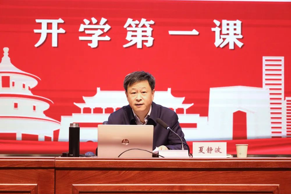 为贯彻落实习近平新时代中国特色社会主义思想,学习宣传贯彻党的二十大精神,弘扬伟大建党精神,进一步引导广大学生感悟党的伟大成就,厚植爱党、爱国、爱社会主义情怀。3月1日,校党委书记夏静波教授以《不负时代 不负华年 用奋斗书写最闪亮青春答卷》为题,面向学生讲授了一堂启迪智慧、沁润心灵的“开学第一课”。学工部相关负责人,各学院党委副书记、辅导员及学生代表500余人现场聆听讲座。