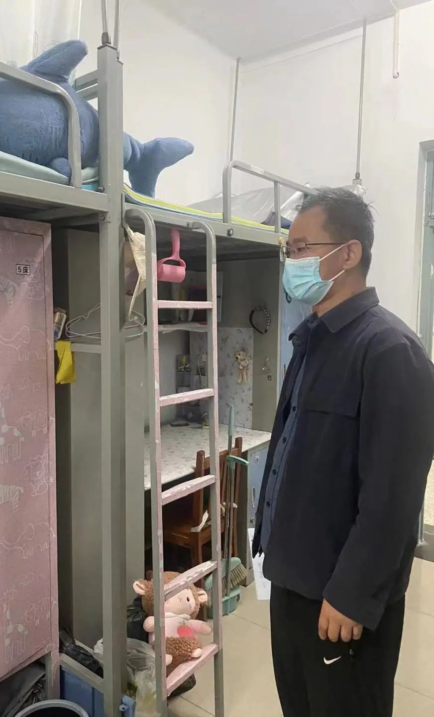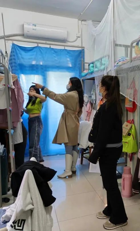 4月25日,副校长刘石英带队,学工部、安全部等部门相关负责同志陪同深入公寓,查看了公寓公共区域、强弱电井、服务设备等风险点,并听取相关工作汇报;在学生宿舍,刘石英副校长亲切与学生交谈,了解学生生活和就业情况,并嘱咐大家牢记校园安全,做到规范用电。相关部门和各学院采取全面排查方式,带领学生干部深入公寓排查各宿舍安全隐患,检查内务卫生情况,现场对住宿同学开展用电安全、吸烟、饮酒、内务卫生等方面的教育工作,确保本次安全检查“横到边、纵到底、全覆盖”。