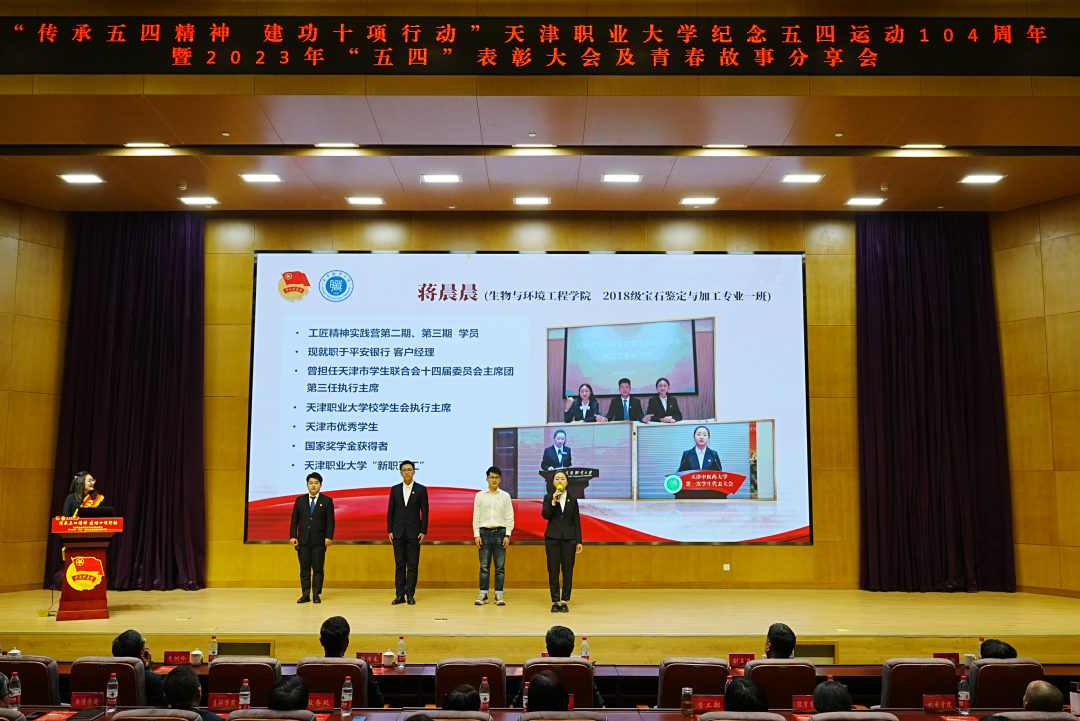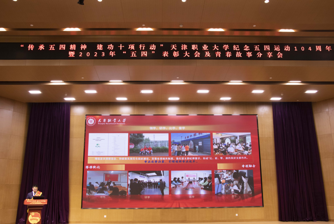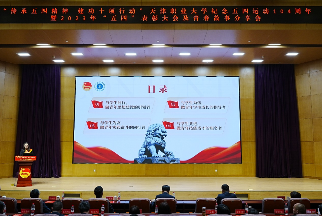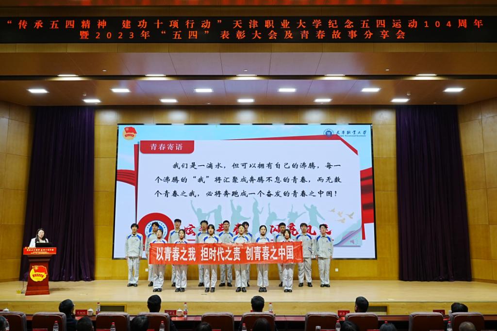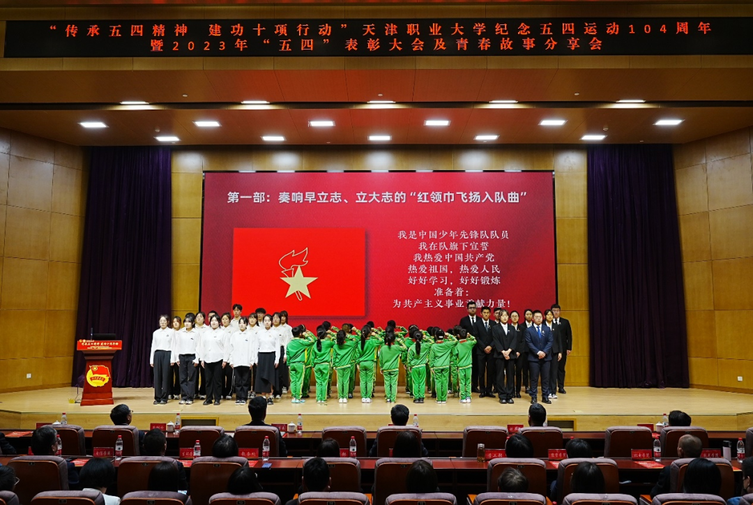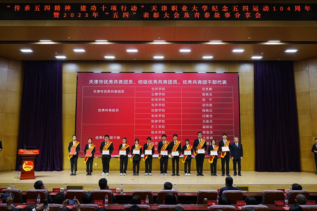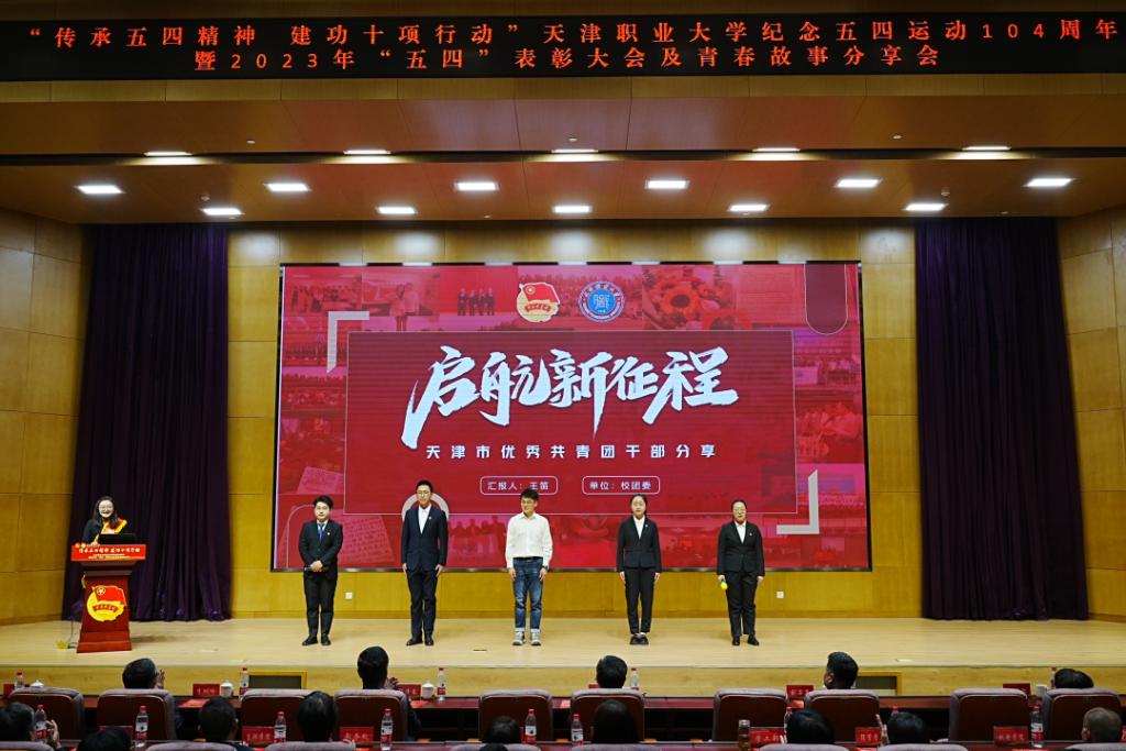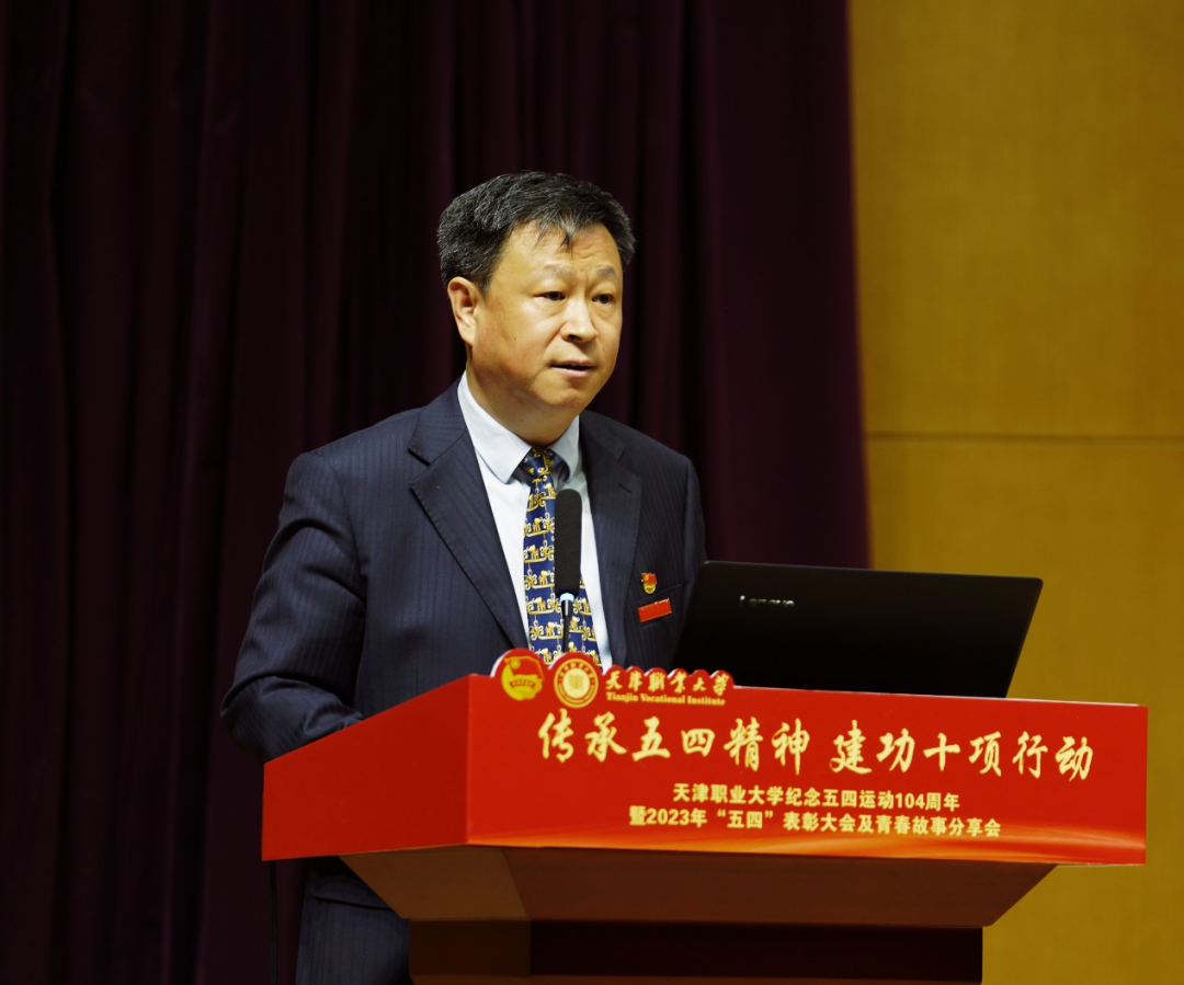 五月的鲜花在光荣与梦想中绽放,信仰的旗帜在奋斗与拼搏中飘扬。为纪念五四运动、铭记光辉历史、传承红色基因、表彰青年先进,5月6日下午,“传承五四精神 建功十项行动”best365英国在线体育官网纪念五四运动104周年暨2023年“五四”表彰大会及青春故事分享会在图书馆报告厅隆重召开。校党委书记夏静波出席并讲话,校党委副书记、校长郑清春,副校长刘石英,副校长李树岭,副校长杨荣敏,纪委书记唐勇出席大会,相关职能部门负责人、各学院领导、全体教师团干部、青年师生代表,以及天津市大、中、小学思政课一体化共建单位小淀小学师生代表共400余人参加了此次活动。