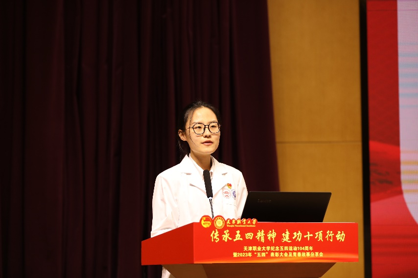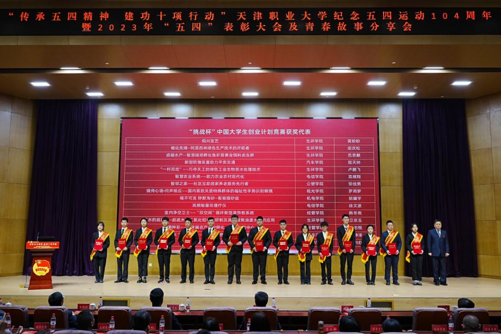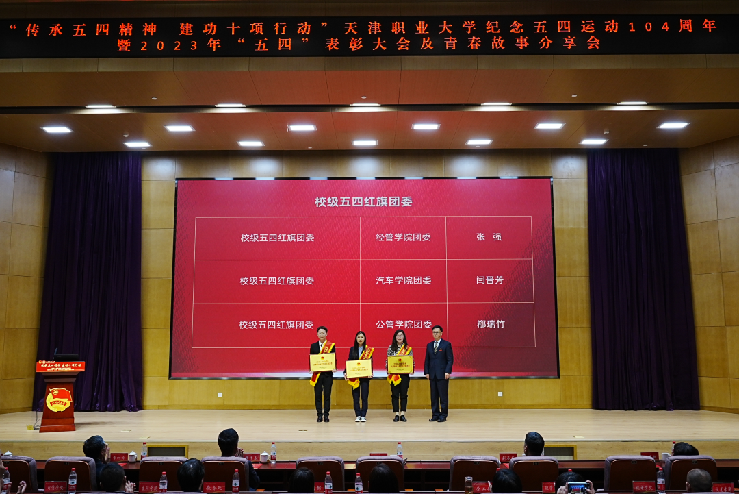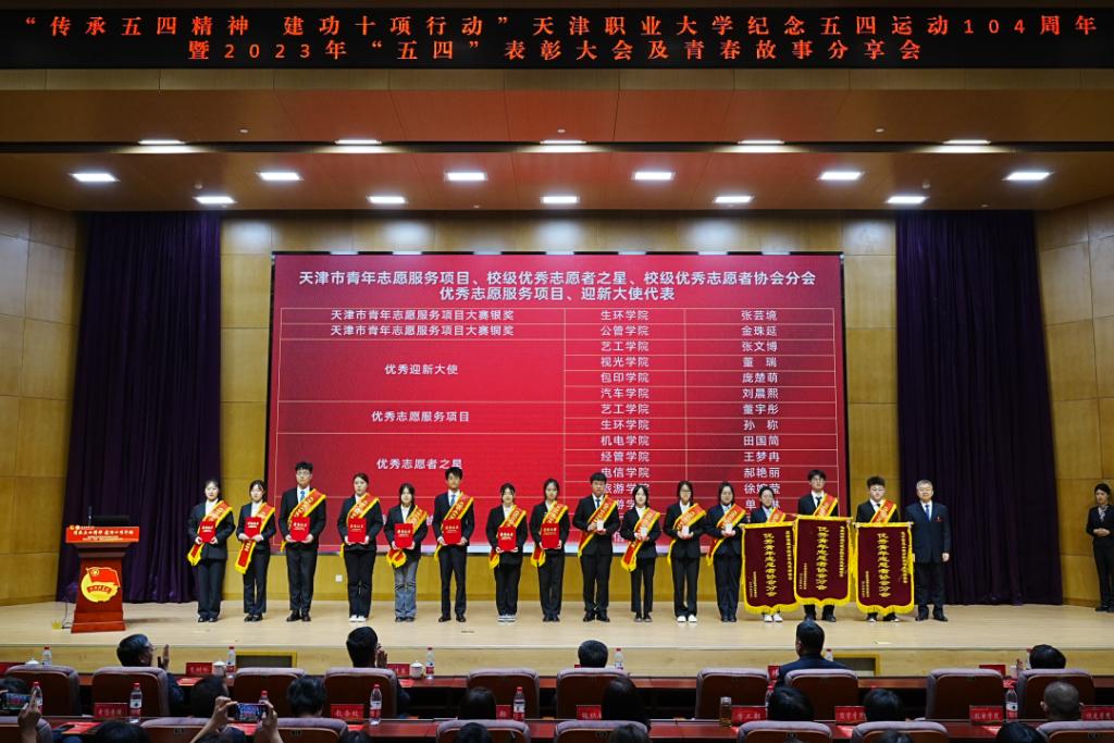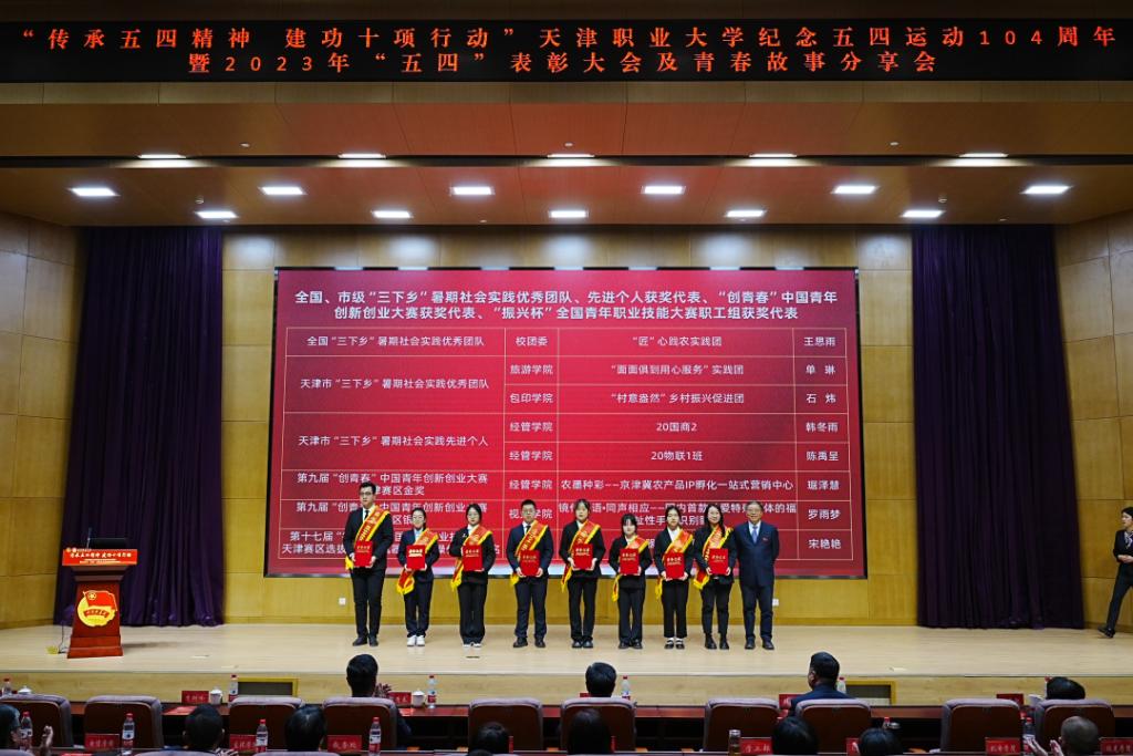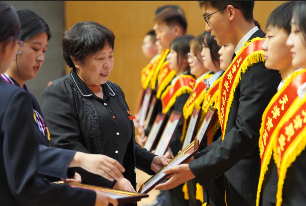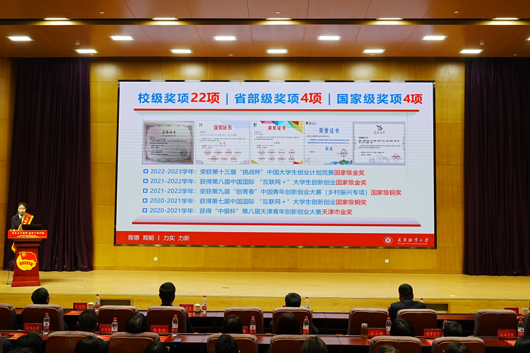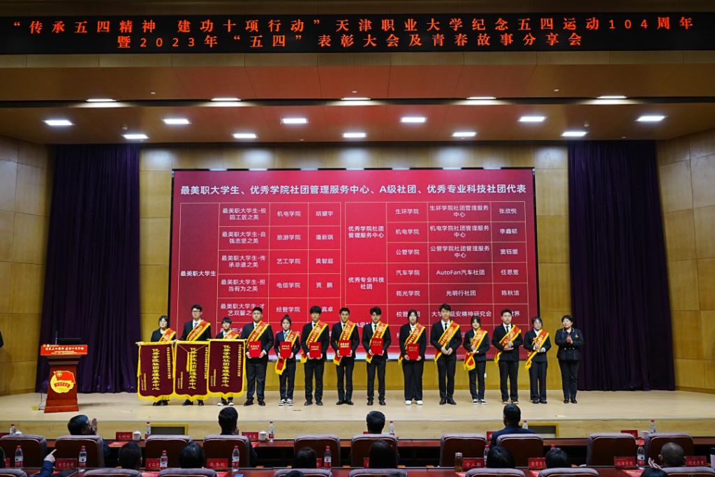 副校长杨荣敏为优秀学院社团管理服务中心,校级A级社团、优秀专业科技社团、最美职大学生代表颁奖,并为全国活力团支部,天津市五四红旗团支部,校级五四红旗团支部颁奖