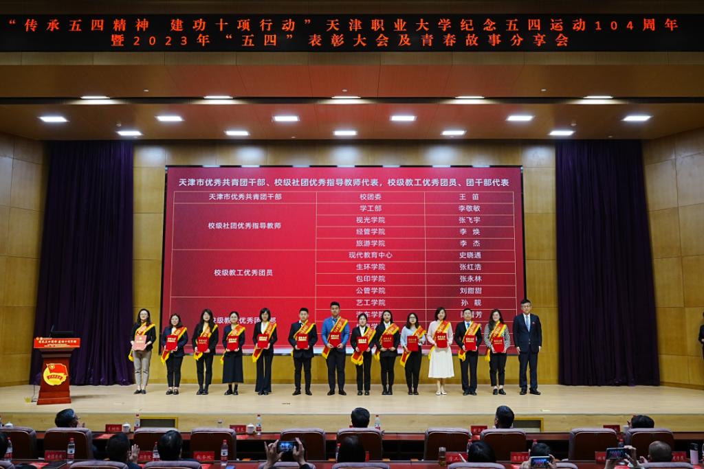 校党委副书记、校长郑清春为天津市优秀共青团干部,校级教工优秀团员、团干部代表,社团优秀指导教师代表颁奖