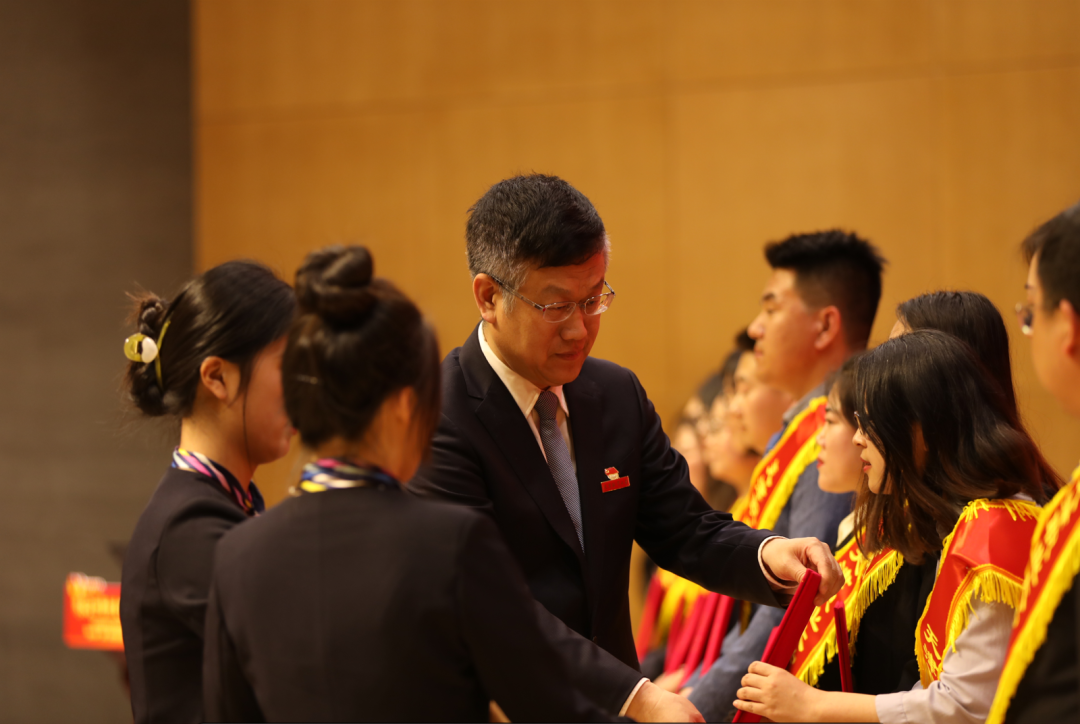 校党委书记夏静波在大会上讲话。夏书记代表学校党委向受到表彰的先进集体和个人表示热烈的祝贺,对各级团组织和广大团员青年、团干部,提出了殷切的希望,号召团员青年行稳致远、堪当大任,苦练技术技能、扎实学识本领、把工匠精神融入爱国奉献的伟大实践,把个人理想融入祖国发展的伟大事业;各级团组织和团干部引领凝聚青年学生听党话、感党恩、跟党走,当好青年的引路人、知心人,为青年成长保驾护航;同时在五四精神的感召下,传承革命薪火,勇担复兴使命,汇聚起勇往直前、无坚不摧的青春动能,把奋斗融入“十项行动”之中,用昂扬姿态展现天职青年的责任与担当,努力成长成为实现中华民族伟大复兴的先锋力量,以实际行动践行“请党放心,强国有我”的铮铮誓言。