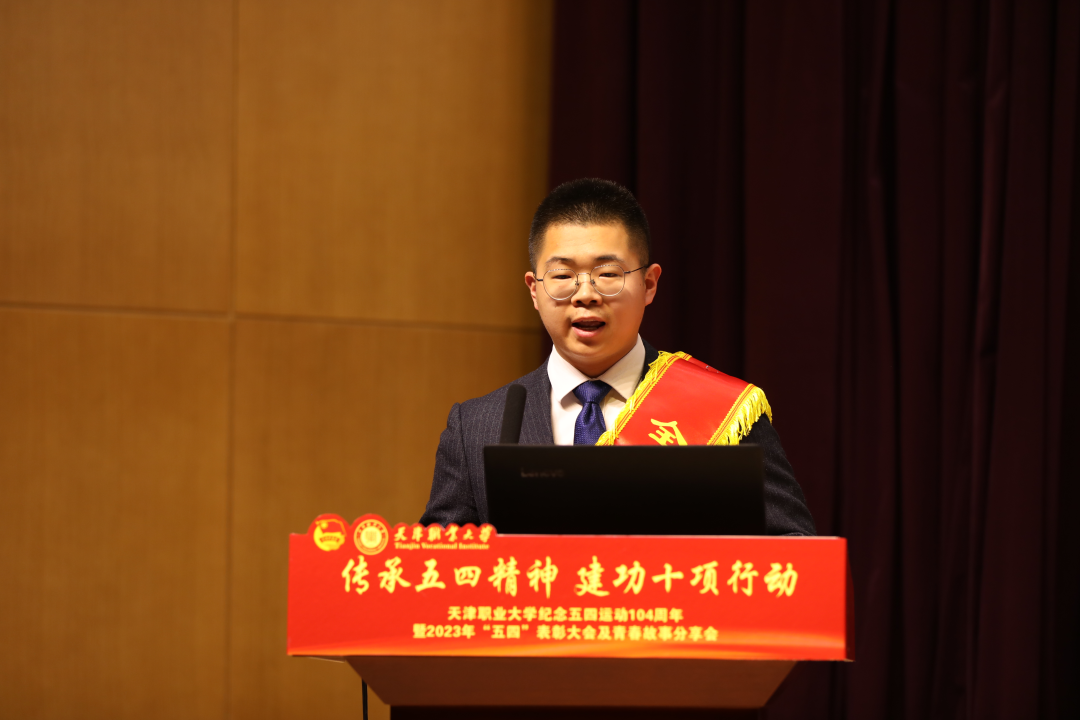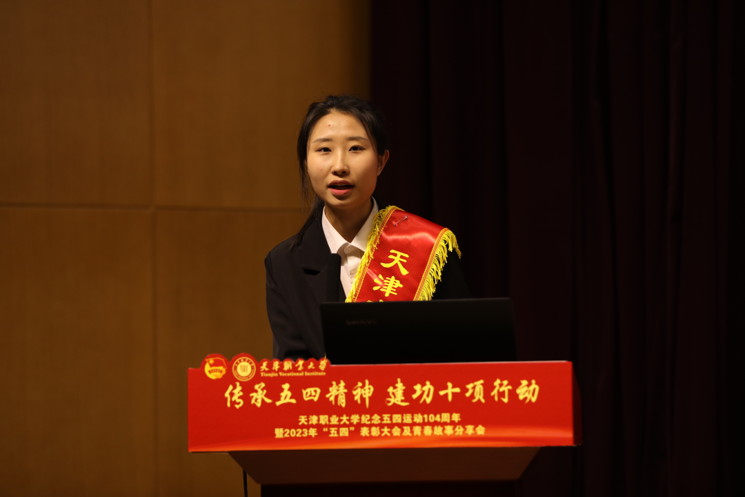 天津市优秀共青团员、生环学院范思麒做《追光筑梦笃行报国之志 勤学善创不负职教之名》分享展示