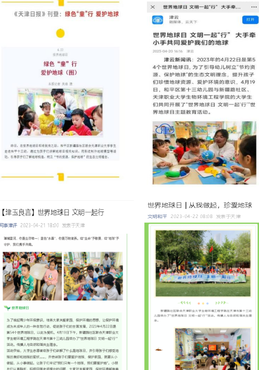 为进一步推进大中小学思政教育一体化建设,生环学院“绿色+”科普服务实践队以“我和我求学的城市”主题教育活动为契机,先后前往和平区汇文中学、北辰区金艺小学、北辰区模范小学等地开展“学科普知识,看百年天津”主题系列实践活动。近日,《天津日报》、“津云”、“网事津评”、“天津和平”等多家媒体相继报道生环学院“绿色+”科普实践活动情况。