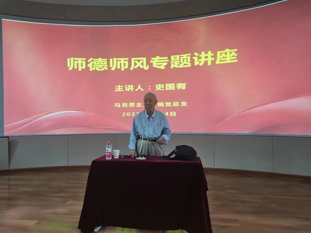 将近3个小时的讲座中,80多岁的史老师全程站立授课,他以“高举旗帜 赤诚担当 做新时代思政课教师”为题,从“时代要求,使命光荣”“明确方向,砥砺奋进”“传承文化,启迪修身”“两项建议,两点祝愿”四个方面,向在座的思政课教师分享了学习习近平总书记在学校思想政治理论课教师座谈会上的重要讲话等学习心得,并从强化自身素质、不断改革创新、深入学生实际等方面激励大家争做“六要+四有”优秀思政课教师。