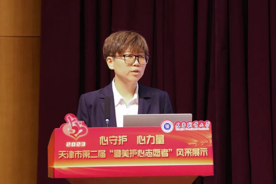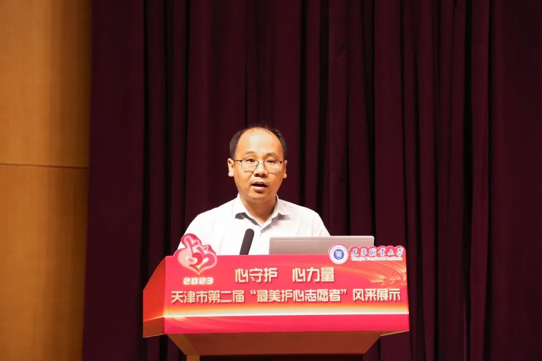 随后,主持人宣读了“心守护•心力量”天津市第二届“最美护心志愿者”评选活动结果。本次活动,得到了全市广大师生积极参与,在大学组和中小学组(含中职)137名参评选手中,经过专家评审初评、网络投票、专家评审终评等环节,最终评选出大学组和中小学组各组的前10名为“最美护心志愿者”,其余进入终评的选手获得提名奖。best365推荐参评的教师樊玉霜和学生张心迪获得大学组“最美护心志愿者”荣誉称号。