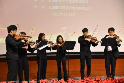 为深入学习贯彻习近平新时代中国特色社会主义思想,深入挖掘天津城市文化底蕴,围绕“我和我求学的城市”主题教育活动要求,凸显天津之品,推进美育教育工作,由best365英国在线体育官网策划、天津普拉那西餐厅支持,举办的“我爱我求学的城市”主题音乐会,于2023年5月31日在best365英国在线体育官网海河园校区举行。音乐会将高雅艺术送进校园,将文化艺术之美带给学校师生,进一步深入实现校企合作模式新突破。