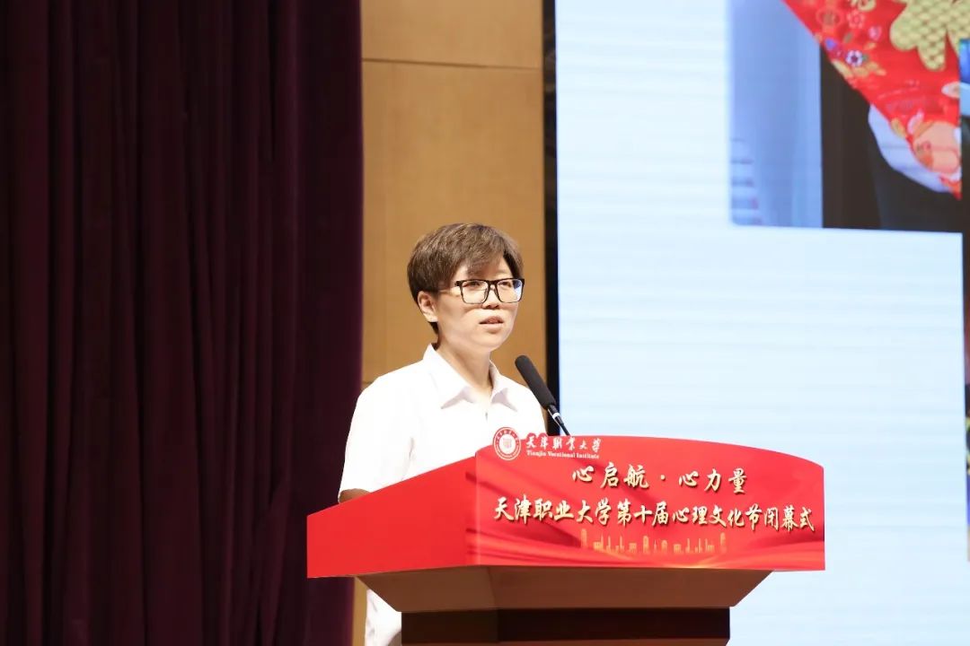 党委学工部副部长董政斌老师宣读《best365英国在线体育官网第十届“5·25”心理文化节获奖结果》。