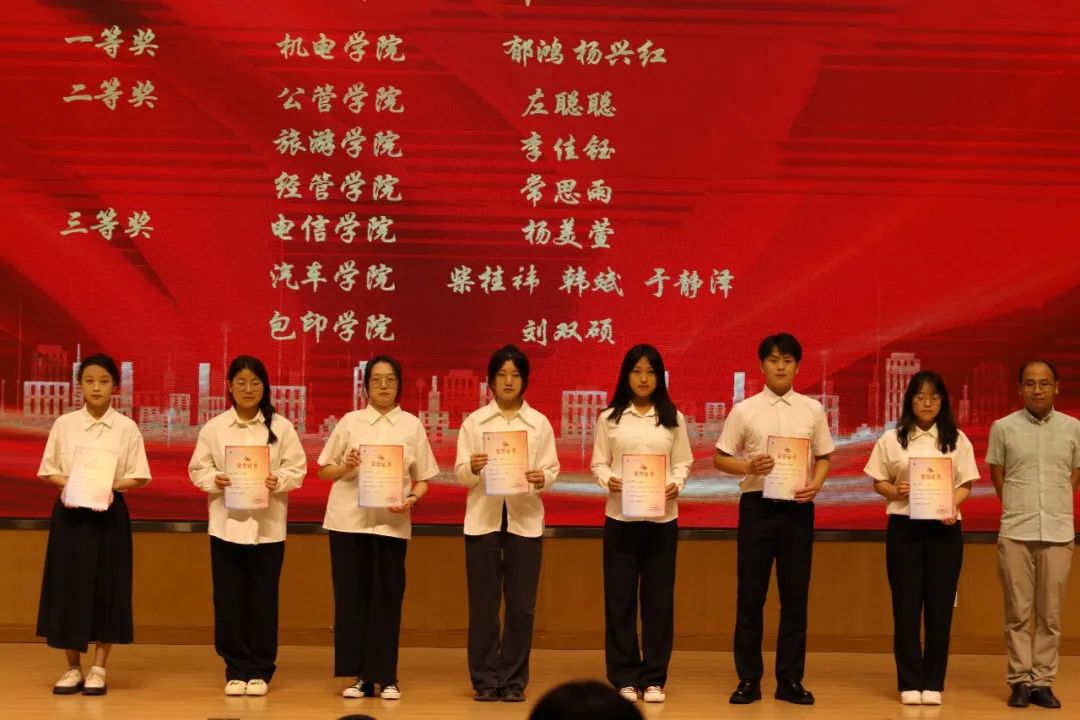 党委学工部副部长董政斌老师为励志演讲大赛获奖者颁发荣誉证书。