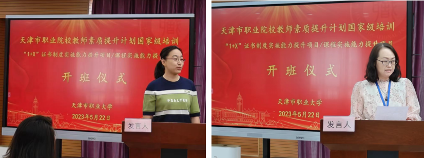 来自天津交通职业技术学院和东丽区职教中心的老师分别作为“1+X”证书制度实施能力提升项目的学员代表和中职课程实施能力提升项目的学员代表进行发言,他们表示一定会珍惜这次宝贵的机会,在培训过程中怀揣目标、认真学习,以高标准要求自己,遵守培训班的各项规章制度,高质量完成培训任务,将学到的知识与技能运用到日后的教学中