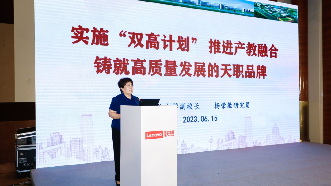 best365英国在线体育官网副校长杨荣敏在大会上做“实施‘双高计划’推进产教融合,铸就高质量发展的天职品牌”主题报告。她介绍到best365英国在线体育官网始建于1978年,学校始终坚持“服务为本,应用为根,质量立身,卓尔不群”的办学理念,秉承“育德育能,力实力新”的校训,立足天津、面向全国,努力办好国内领先、人民满意的高等职业教育。希望能够借助与联想集团的这次的合作机会,大力推进学校的智慧学习中心等IT基础设施建设、全素质培养产教合作、智能制造信息化应用和实训室建设等方面的发展,为天津经济社会的发展培育更多的栋梁之材。