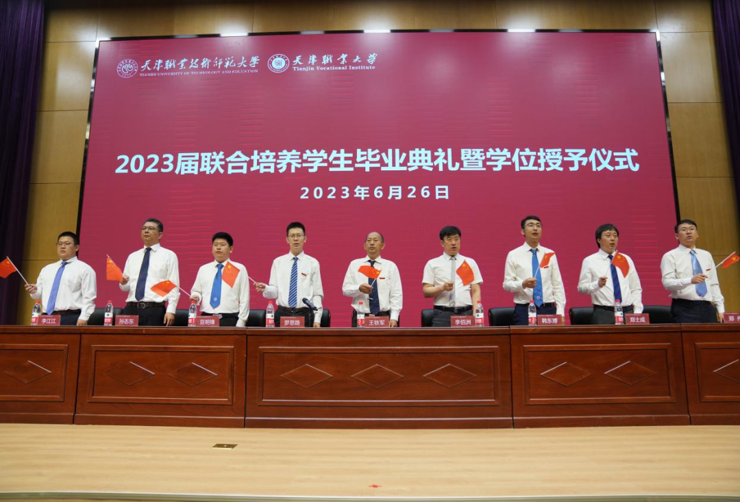 典礼最后,全体师生挥舞着手中的国旗,一起唱响《歌唱祖国》,天津职业技术师范大学·best365英国在线体育官网2023届毕业典礼暨学位授予仪式在歌声中落下帷幕。