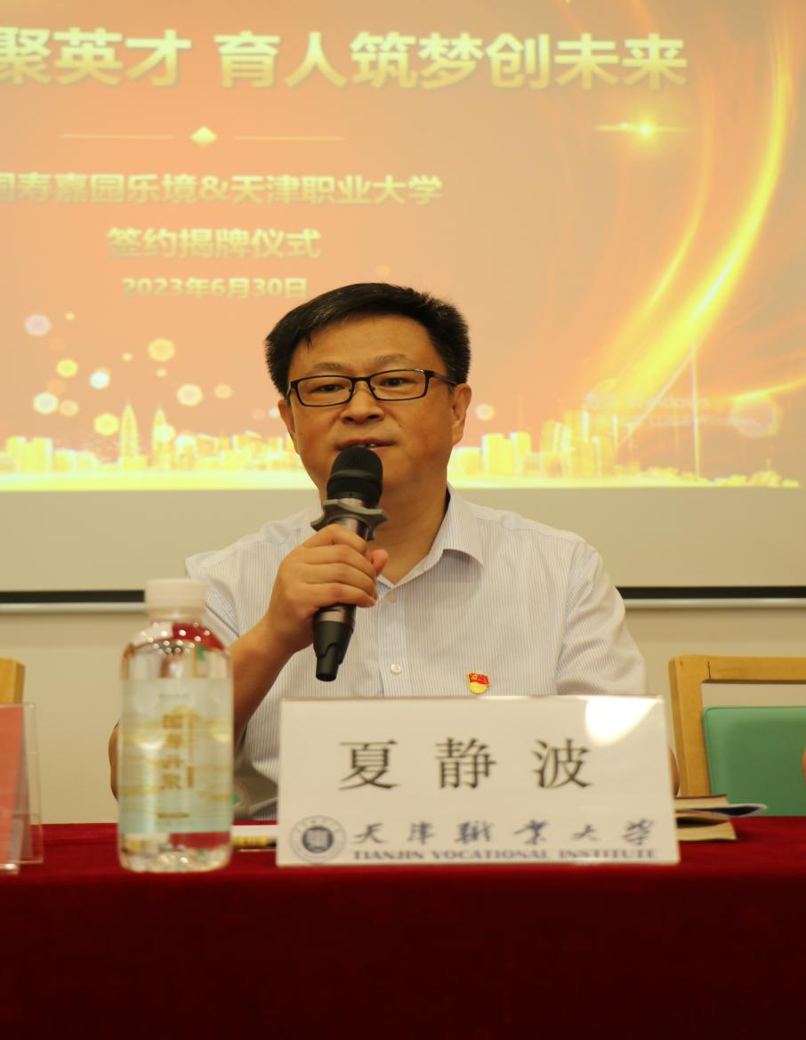 之后,公共管理学院负责人与国寿(天津)养老养生投资有限公司负责人代表双方签署了《校企合作框架协议书》,并为“best365英国在线体育官网公共管理学院校外实践教育基地”揭牌。活动的开展旨在充分发挥校企双方优势,发挥职业教育为社会、行业、企业服务的功能,也为学生实习、实训、就业等提供更大空间。同时,从思想政治教育、社会主义核心价值观教育、志愿服务三大方面进行共建,共同构建校企育人共同体。
