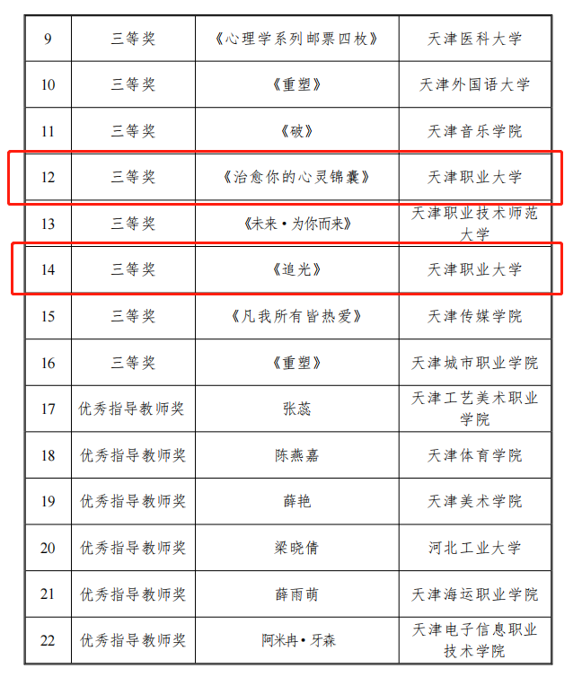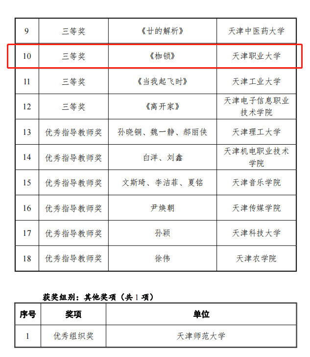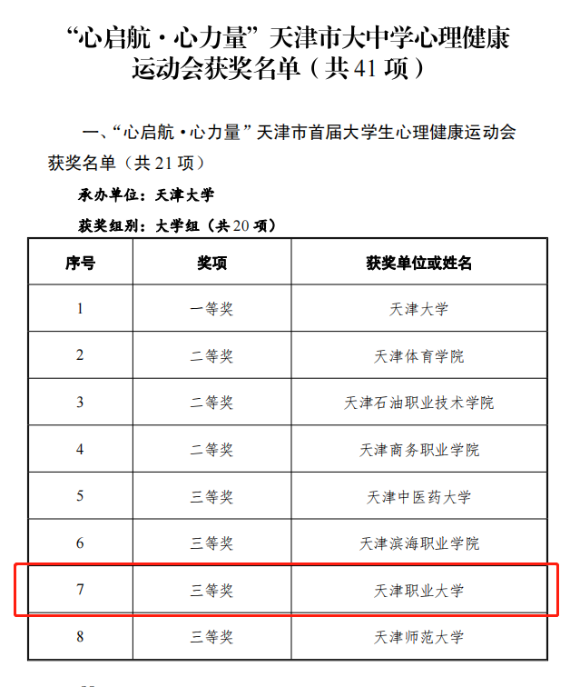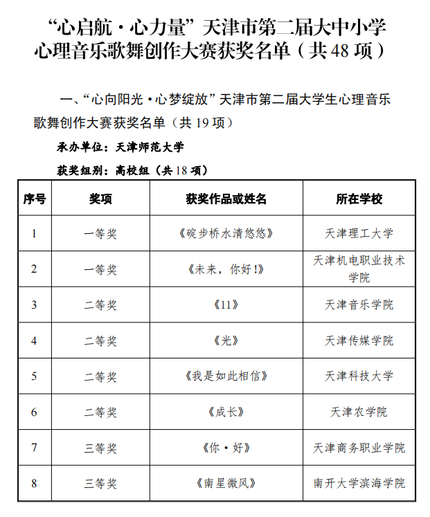 荣获天津市第二届大学生心理音乐歌舞创作大赛三等奖