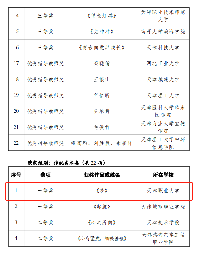 旅游学院郝玉辉同学的作品《梦》荣获天津市