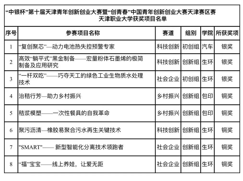 7月16日,由团市委、中国银行天津市分行、天津港保税区管委会联合举办的“中银杯”第十届天津青年创新创业大赛暨“创青春”中国青年创新创业大赛天津赛区赛在天津港保税区文化中心落下帷幕,best365三个项目汽车学院《“复创聚芯”—动力电池热失控预警专家》、生环学院《高效“躺平式”黑金制备——宏量粉体石墨烯的极简制备及应用研究》《“一杆双吃”——巧夺天工的绿色工业生物质水处理技术》均获得市赛银奖的优异成绩。另外包印学院《治秸行芳—助力乡村振兴》等五个项目获得铜奖。截至当前《高效“躺平式”黑金制备——宏量粉体石墨烯的极简制备及应用研究》项目收到推荐至国赛的通知。