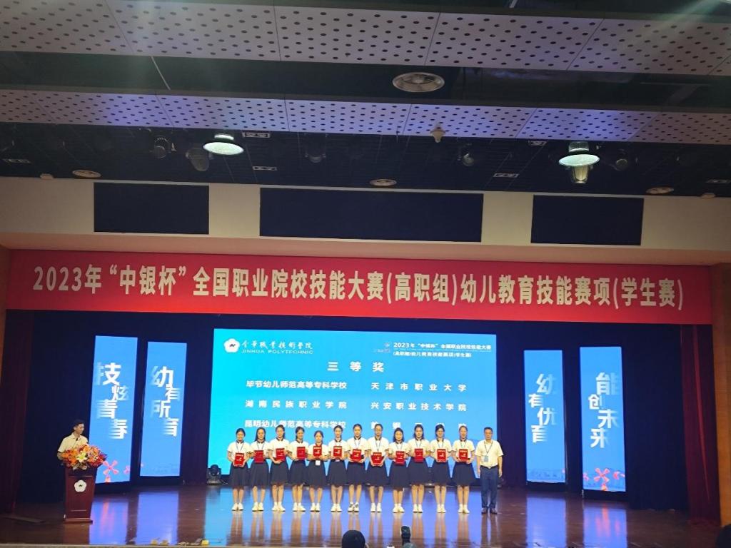 best365公共管理学院20级学前教育专业学生汪诗然,21级学前教育专业学生张惠玲在刚刚结束的2023年“中银杯”全国职业院校技能大赛(高职组)幼儿教育技能赛项(学生赛)中凭借出色发挥获得三等奖。这是天津高职院校在该赛项上首次获得国奖。今年,幼儿教育技能赛项于8月19日-8月22日在浙江金华职业技术学院举行,来自全国31个省(直辖市、自治区)的59个院校、59支代表队118名选手参加了本次比赛。