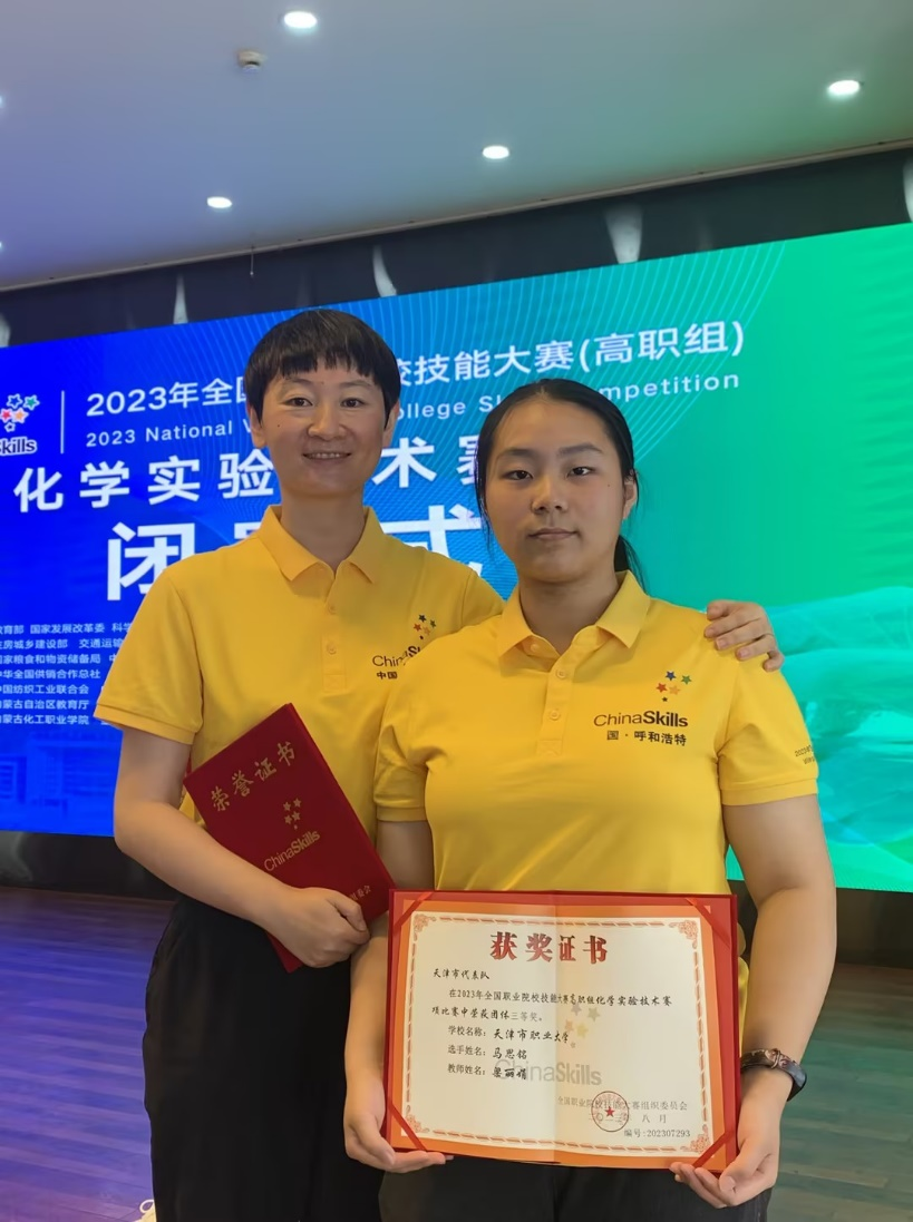 生物与环境工程学院分析检验技术专业师生积极参与到备赛训练中,学院领导高度重视,定期组织演练及对抗赛。参赛教师梁丽娟与参赛学生马思铭牺牲假期,克服假期训练中的诸多困难。从省赛选拔赛到国赛,分析检验技术专业教师梁丽娟和2021级1班学生马思铭脱颖而出,代表天津市参加比赛,以扎实的专业功底、默契的配合和良好的职业素养、出色的现场发挥,最终荣获国赛三等奖。
