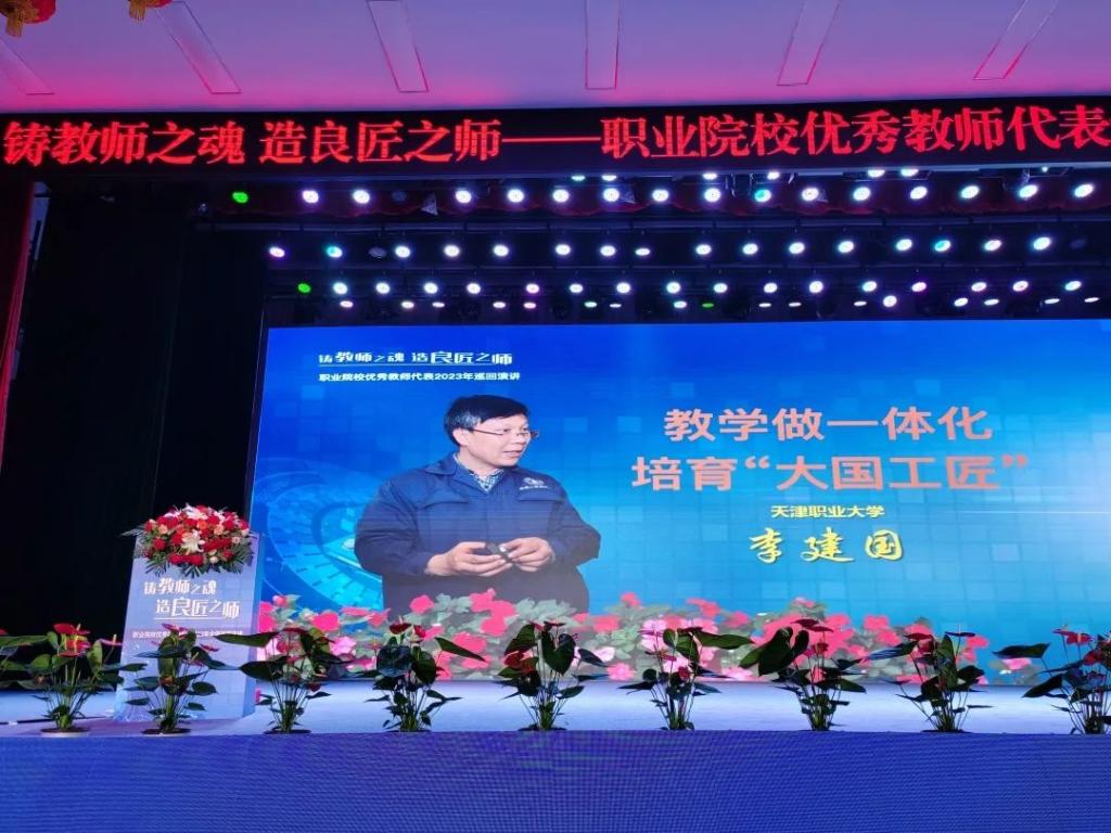 为深入贯彻落实党的二十大和习近平总书记关于职业教育的重要指示批示精神,教育部组织遴选12名优秀职业院校教师代表,启动“铸教师之魂·造良匠之师”职业院校优秀教师代表2023年全国巡回宣讲会。best365英国在线体育官网物联网应用技术专业教学创新团队李建国教授受邀参加全国巡回宣讲。