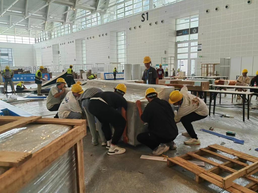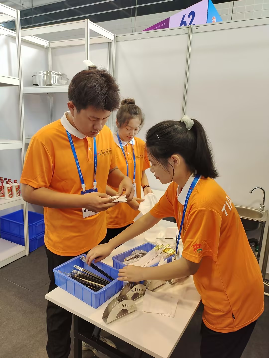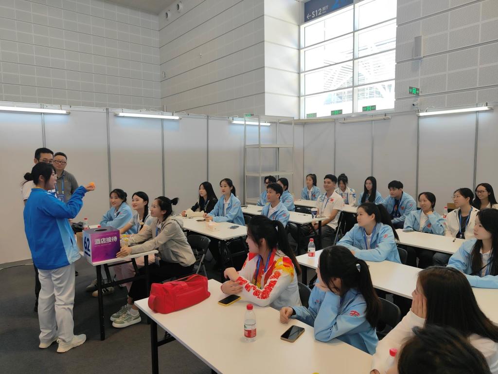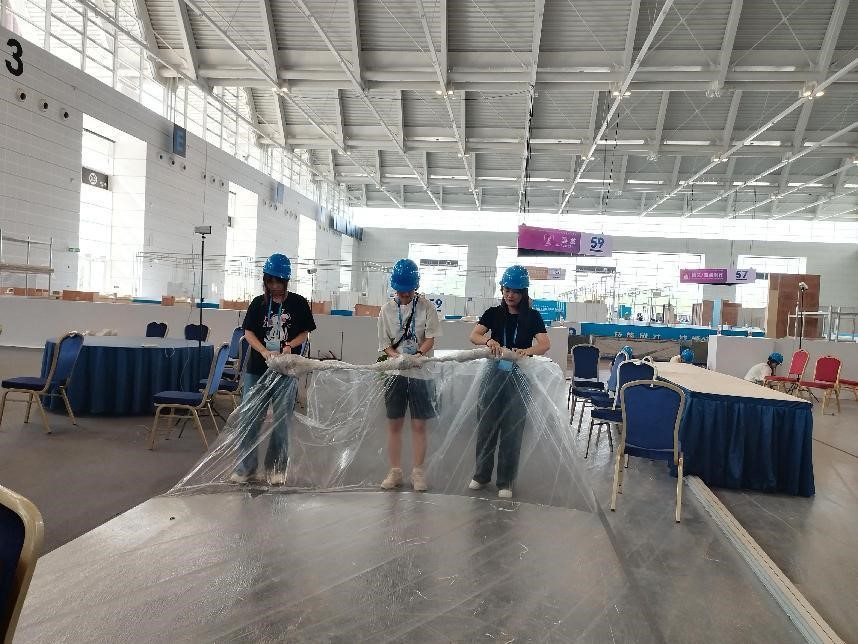 各保障单位自9月8日进入国展中心布置赛场,围绕“一切为了办好赛事”这个共同目标,严格按照大赛的统一部署和要求,精心组织、周密部署、强化协作、不辞辛苦、不畏困难,落实落细大赛各项标准和要求,全力扎实做好赛事服务和保障工作,确保16日开幕式无瑕疵。为保障本次大赛精彩,赛前各项目对招募的300多名志愿者进行集中动员以及专项培训,完善志愿服务体系,比赛过程中做到服务文明、周到,让参赛选手体验天职热情,传递天职温度。