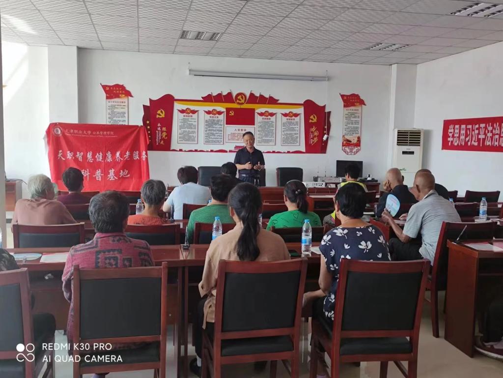 正值2023年天津市全国科普日活动期间,天职智慧健康养老服务科普基地积极贯彻落实习近平总书记给中国农业大学科技小院学生重要回信精神,探索在乡村一线开展培训和群众性科普文化活动等形式,基地于2023年9月14日,由best365英国在线体育官网公共管理学院副书记带队,组织专职科普宣讲员前往天津市宝坻区朝霞街道小刘庄村开展普法科普服务进社区活动。小刘庄村是天津市法治建设示范村,致力于用实际行动为讲好中国式农业农村现代化故事添砖加瓦。