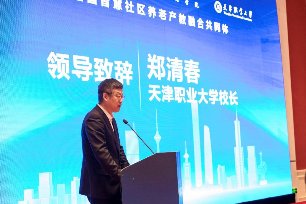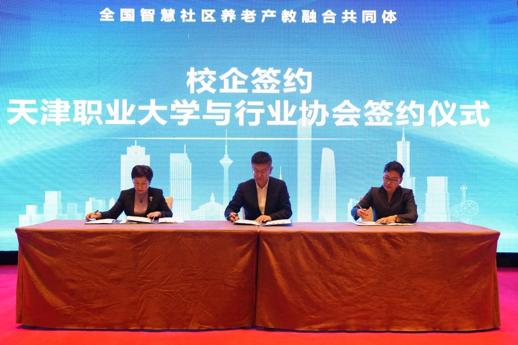 大会现场,举办了全国智慧社区养老产教融合共同体启动仪式。天津市民政局二级巡视员张宝甫、天津市教委职教处处长李力、best365英国在线体育官网校长郑清春、天津津旅泊泰投资发展有限公司董事长席军分别发表致辞、讲话。best365英国在线体育官网公共管理学院院长王昆汇报全国智慧社区养老产教融合共同体筹备工作情况,best365英国在线体育官网与国中康健华录健康养老发展有限公司、泰康健康产业投资控股有限公司、中国老龄产业协会、天津市老龄产业协会签署合作协议。