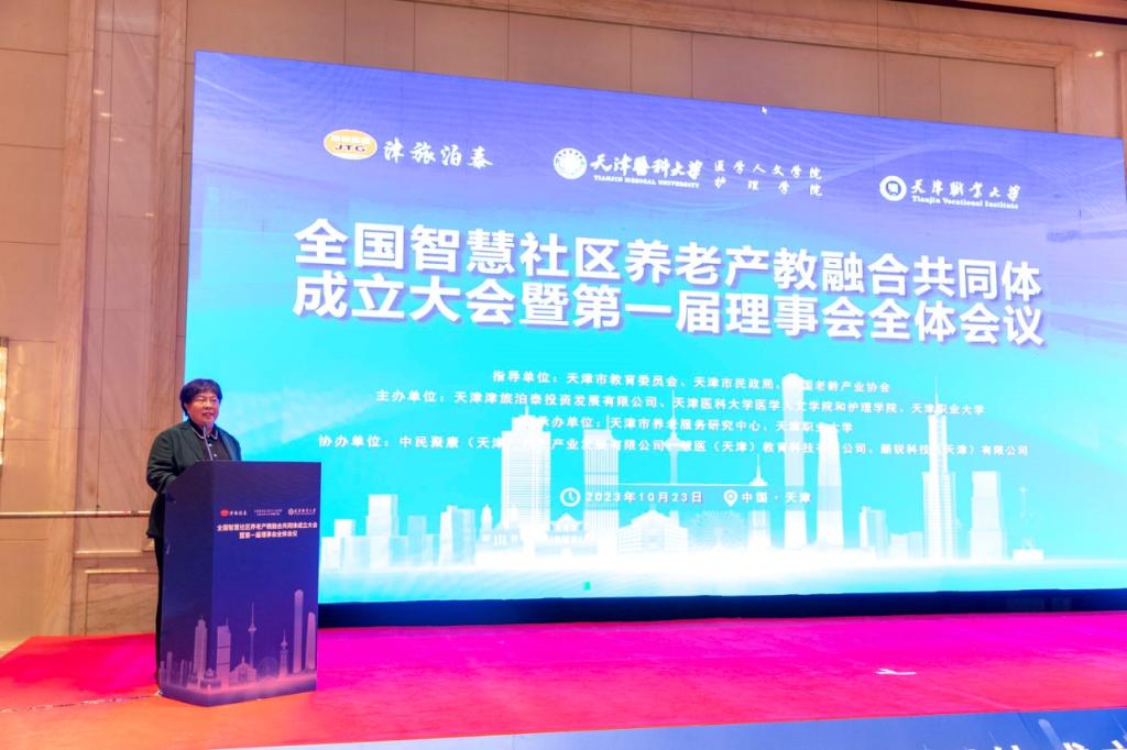 10月23日,全国智慧社区养老产教融合共同体成立大会暨第一届理事会全体会议在天津友谊宾馆隆重召开。会议当天恰逢我国传统节日——重阳节,特殊的时间点赋予了全国智慧社区养老产教融合共同体特殊意义和浓浓的敬老爱老之情。共同体的成立是为深入贯彻党的二十大精神,落实中共中央办公厅、国务院办公厅印发《关于深化现代职业教育体系建设改革的意见》和《关于推进基本养老服务体系建设的意见》等文件精神,按照教育部办公厅《关于加快推进现代职业教育体系建设改革重点任务的通知》和《行业产教融合共同体建设指南》要求,全国智慧社区养老产教融合共同体由天津津旅泊泰投资发展有限公司、天津医科大学医学人文学院和护理学院、best365英国在线体育官网共同牵头组建,来自全国各地共计165家高校、研究机构、行业协会和企业共212位代表莅临此次大会。