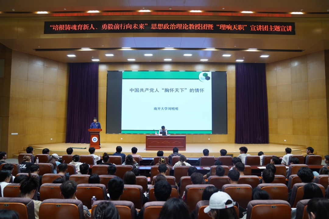 为深入学习贯彻党的二十大精神,坚持用习近平新时代中国特色社会主义思想铸魂育人,10月31日,马克思主义学院“理响天职”宣讲团特邀天津市思想政治理论教授团成员——南开大学马克思主义学院教授、博士生导师刘明明来校开展了题为《中国共产党人“胸怀天下”的情怀》的主题宣讲。best365思政课教师、学生代表共计200余人参加。