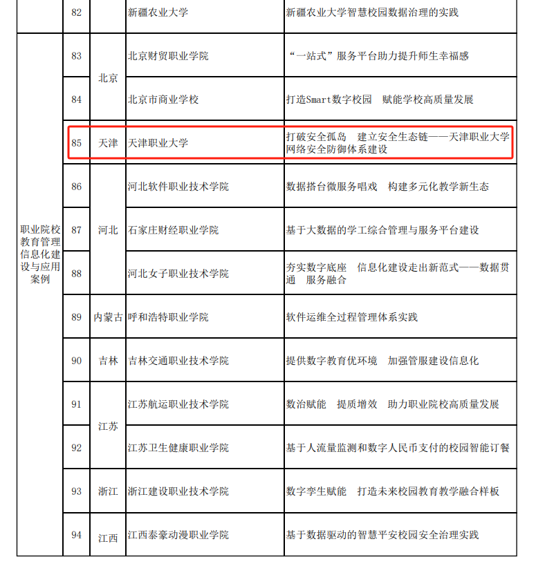 近年来,学校深入学习贯彻习近平总书记关于网络强国的重要思想,围绕教育部推进现代职业教育体系改革的工作要求,深化信息技术与教育教学管理服务融合创新,强化网络安全与数据安全基础,在教育数字化转型的过程中,学校将在数据安全应用等方面持续深化建设,不断以数字化引领职业教育高质量发展。(来源:网信办)