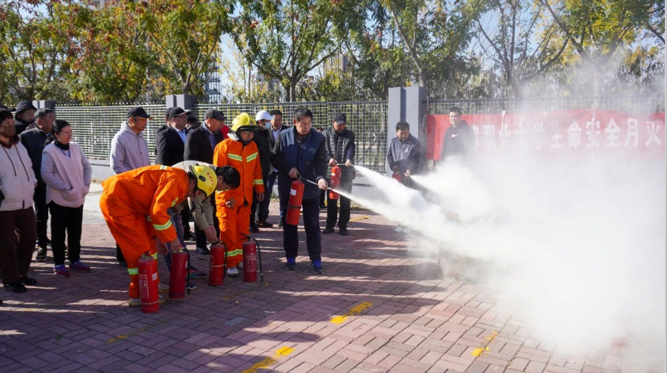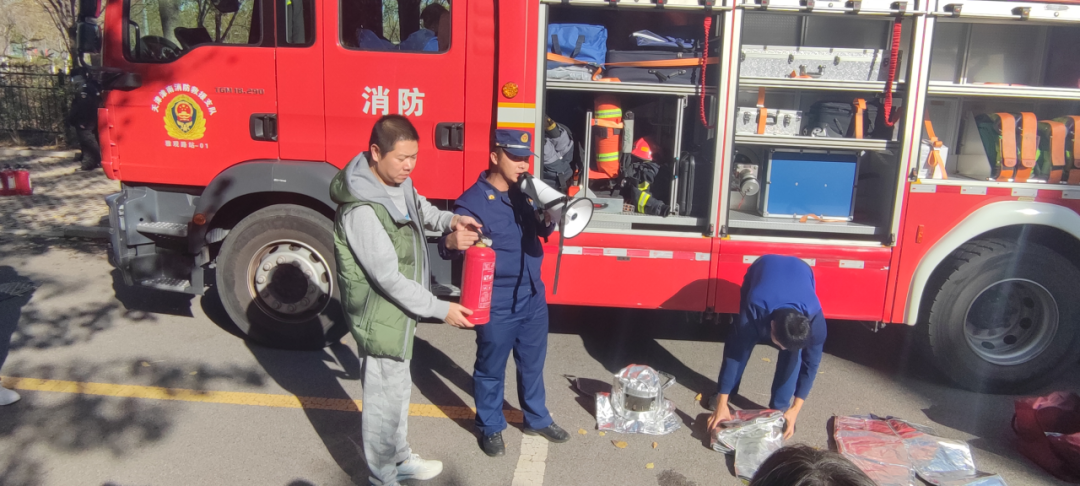 疏散演练结束后,安全部、学工部联合消防官兵对公寓物业服务人员、学生代表进行了消防安全培训,从灭火器构成、使用到宿舍火灾应对,把每一处安全细节都讲解到位。其中,海河园雅观路消防站副站长胡亦冉带领消防官兵为师生展示了消防车上各类消防设备,讲解了逃生疏散的注意事项,充分提升了学生火灾逃生的应对能力。随后,师生代表进行灭火实操演练,通过实践进一步增强应急处置能力。