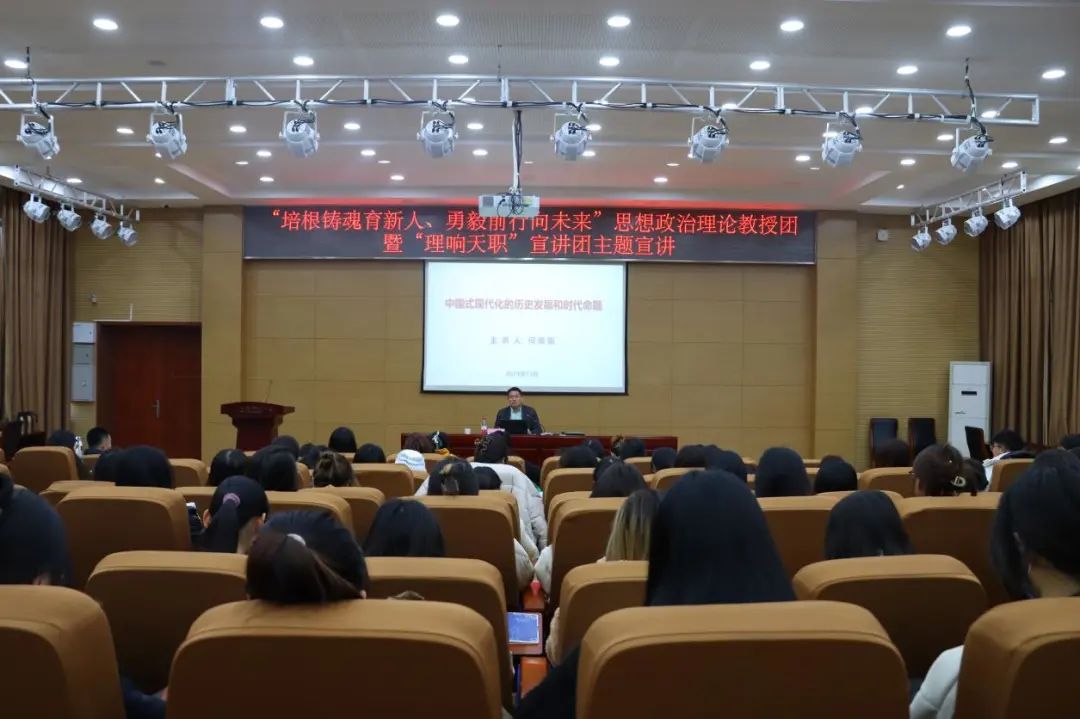 为深入学习贯彻党的二十大精神,坚持用习近平新时代中国特色社会主义思想铸魂育人,11月14日,马克思主义学院“理响天职”宣讲团特邀天津城建大学马克思主义学院院长何继新教授为学生们开展“中国式现代化的历史发展和时代命题”主题宣讲。