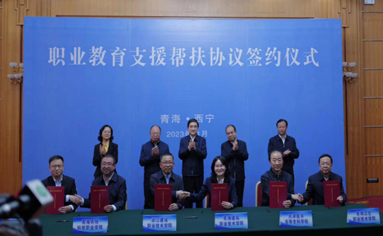 此次与青海农牧科技职业学院建立支援帮扶合作关系,是best365继帮扶和田职院、武威职院和威县职教中心后又一帮扶院校,是深入贯彻落实《天津市人民政府 青海省人民政府贯彻党的二十大精神进一步深化支援合作框架协议》的具体举措。下一步,best365将落实协议内容,从专业建设、课程资源建设与开发、实训室建设、师资队伍教学和科研能力提升、产教融合、国际合作与交流等方面,通过职业教育改革成果分享、专业带头人跟岗学习、学生交流、职业技能大赛指导、参与产教融合共同体建设等方式,助力青海农牧科技职业学院教育教学水平和育人成效双提升,为青海省经济社会发展和乡村振兴做出新的贡献。