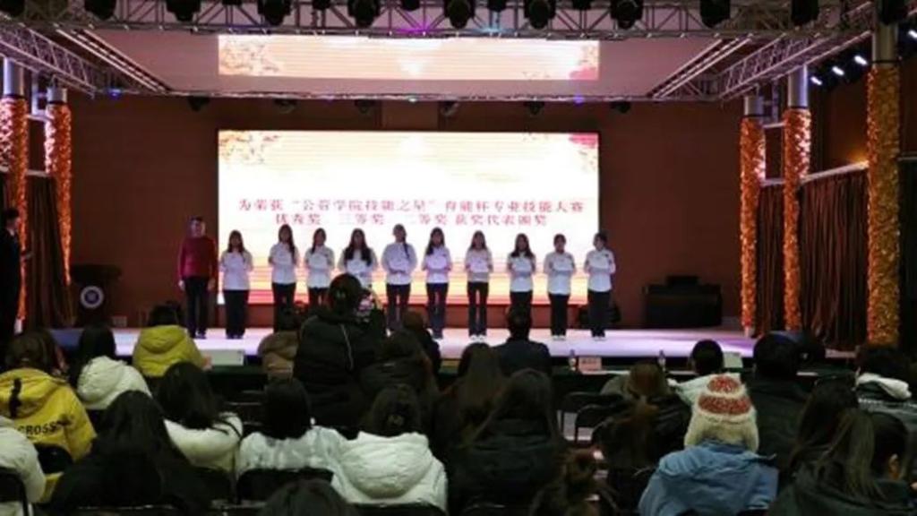 公共管理学院院长及学院班子成员、师生代表共300余人参加了本次活动。学工部老师、旅游管理学院党委副书记也受邀参加了本次活动。公共管理学院首届“海河”文化艺术节暨职业技能大赛表彰大会共分为理想、本领、担当、奋斗四个篇章,涵盖了舞蹈、乐器、戏曲、朗诵等多种艺术表演形式,对在国家级技能大赛、行业大赛以及“育能杯”专业技能大赛中涌现出的优秀个人进行表彰并授予“公管学院工匠之星”、“公管学院技能之星”的荣誉称号。近两个小时的活动让参加活动的同学们收获满满,享受文化盛宴的同时,立志技能报国。