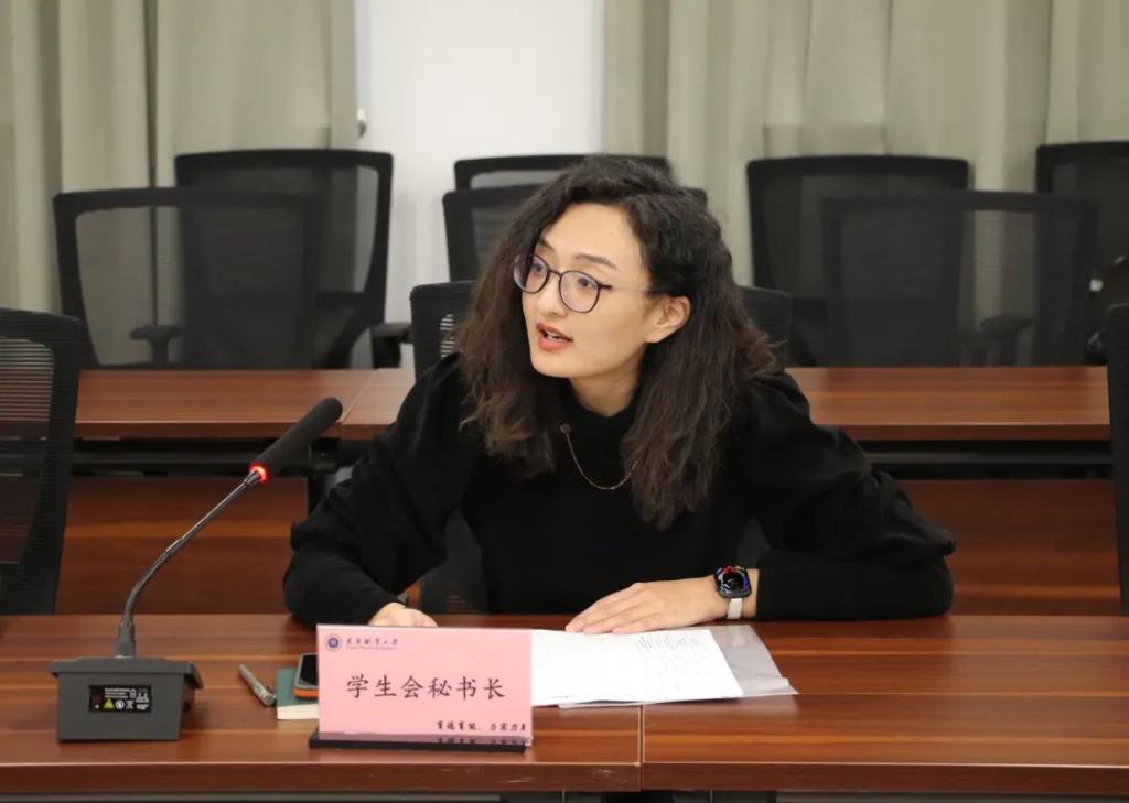 校学生会秘书长就今年校院两级学生会整体的换届情况及学生代表大会的召开情况进行汇报。校学生会、学院学生会新一届主席团成员代表分别汇报了下一步的工作设想,也进行了简单的自我介绍和交流,气氛热烈而融洽,为今后工作的开展打下坚实的基础。