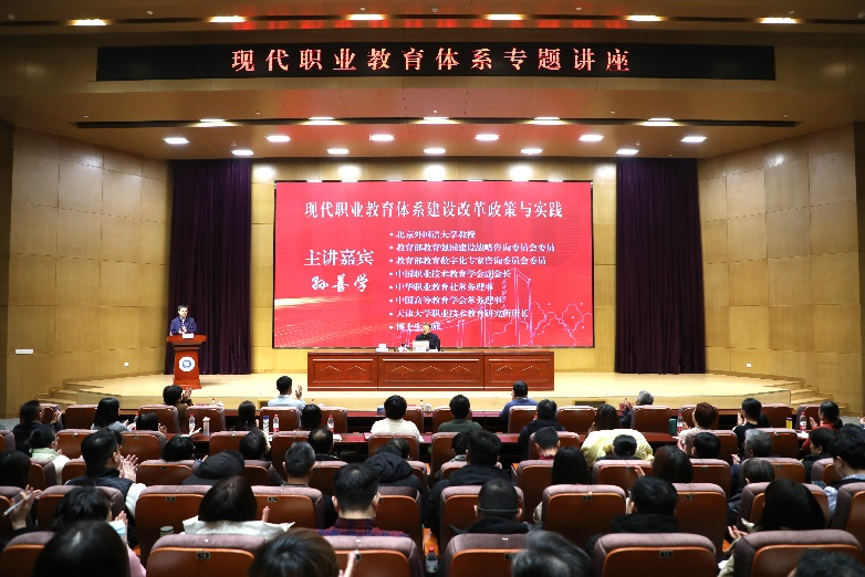 2024年1月18日,现代职业教育体系讲座在主校区图书馆三楼报告厅举行。中国职业技术教育学会副会长、北京外国语大学教授、天津大学职业技术教育研究所所长孙善学教授,作题为《现代职业教育体系建设改革政策与实践》专题讲座。