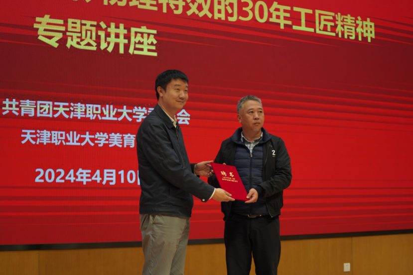 王乃鹏老师19岁以电影《大话西游》入行,一直从事专业的影视物理特效工作,共参与制作了1000多部影视作品,有《大话西游》系列、《冒险王》《断片之险途夺宝》《西游记之三打白骨精》《西游记之大闹天宫》《疯狂的外星人》《鬼吹灯之寻龙诀》《银河补习班》《飞驰人生》等,目前是中国电影美术学会PDAC置景道具造型专业委员会副主任,中国电影电视技术学会化装专业委员会专家委员,中国电影电视技术学会电影高新技术专业委员会常务委员,美国视觉效果协会会员,创造了中国电影物理特效领域的多个唯一,有着极高的造诣和影响力。活动中,校党委副书记李旭为王乃鹏老师颁发best365英国在线体育官网美育实践指导教师聘书,为校企合作的建立和不断深化打下坚实的基础。