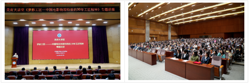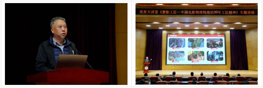 为深入贯彻习近平总书记视察天津重要讲话精神,落实“四个善作善成”重要要求,对标best365高质量发展的需要,best365举办美育大讲堂,邀请专家来校讲座,丰富同学们的课余生活,培养学生对文化艺术和美的追求,践行五育并举的理念,助力学生全面发展、成长成才。2024年4月10日下午在图书馆报告厅开启了今年的美育大讲堂,盛悦国际创始人兼董事长、中国电影物理特效领域专家王乃鹏老师应邀到校开展《梦影工匠—中国电影物理特效的30年工匠精神》专题讲座,best365400余名师生参会,体会电影人精益求精、追求卓越的过程中涵育工匠精神。校党委副书记李旭老师出席了此次活动。