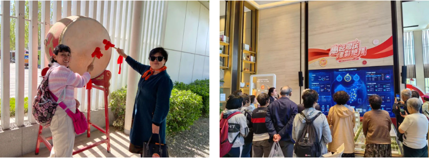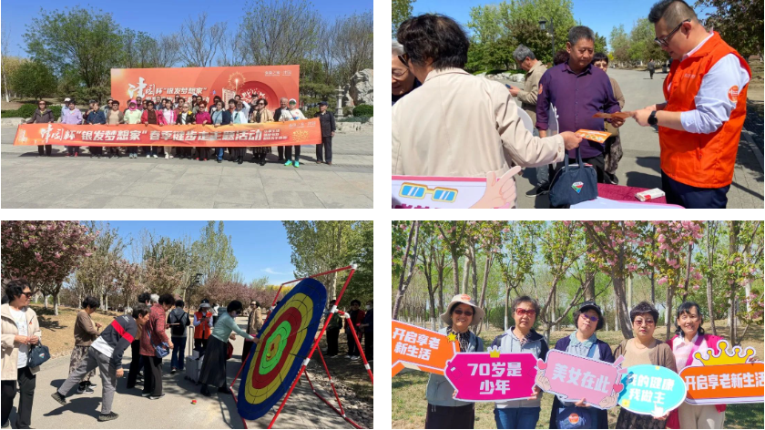 公园里,老同志们进行健步走打卡游戏活动,感受春日气息,欢声笑语不绝于耳。