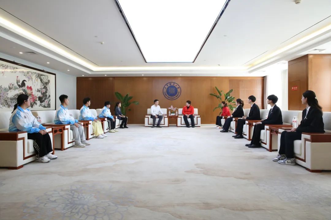 佟文老师还与“青马工程”工匠精神实践营优秀学员代表及校运动队优秀队员代表进行了座谈交流,她鼓励同学们坚守初心、继续努力,一步一个脚印争取更大进步,学生代表为佟文老师献上鲜花。