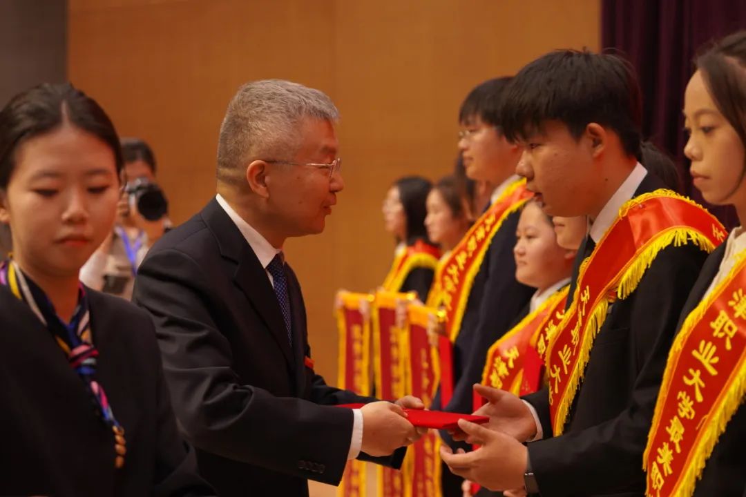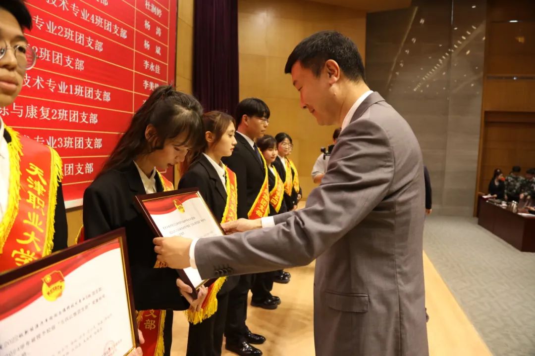校纪委书记唐勇为校级优秀学院社团管理服务中心、最美职大学生、优秀专业科技社团、A级社团代表颁奖,并为天津市团干部岗位技能大比武优秀奖获得者,校级教工优秀团员、团干部代表,社团优秀指导教师代表颁奖