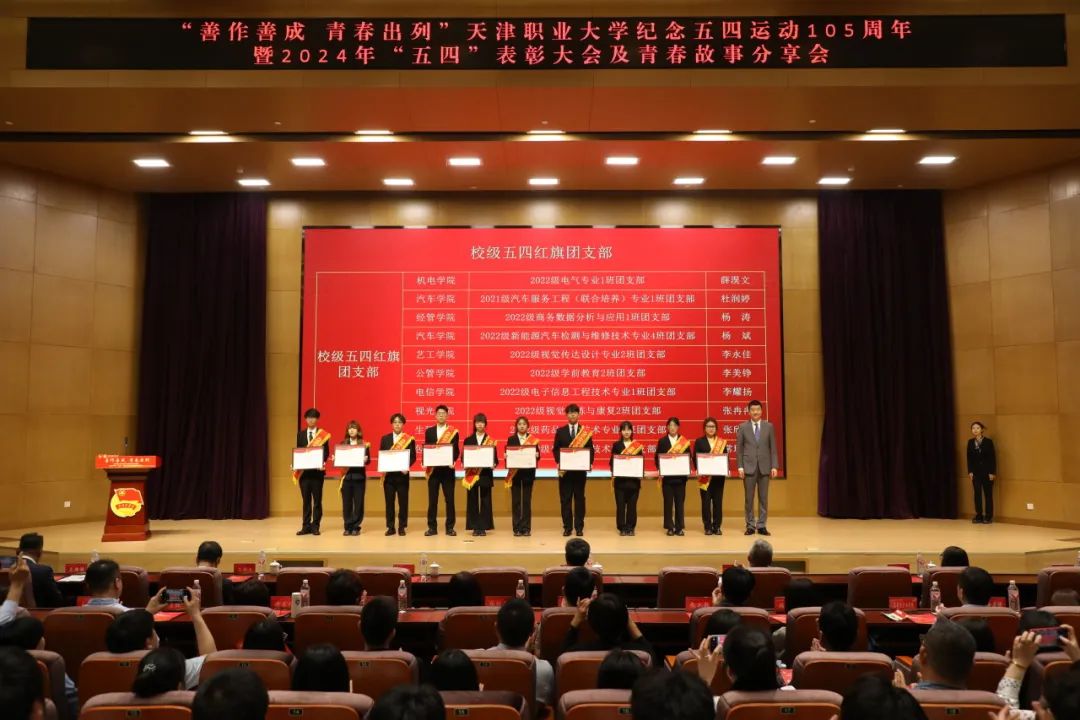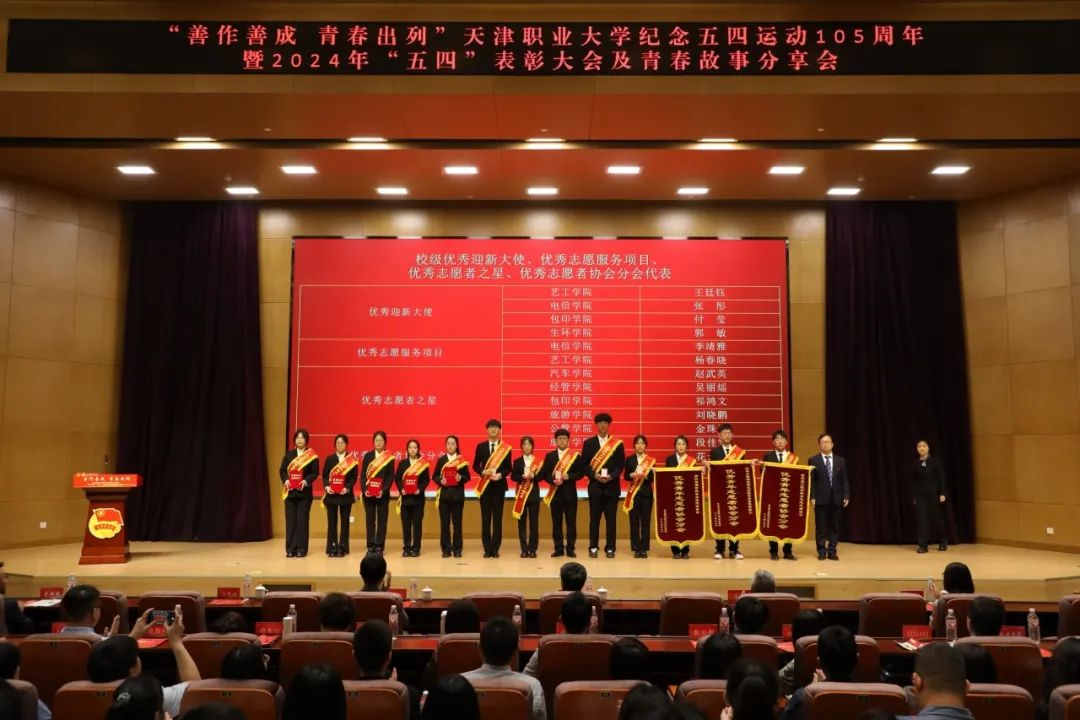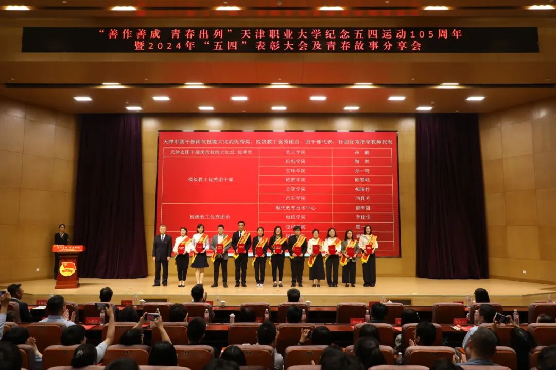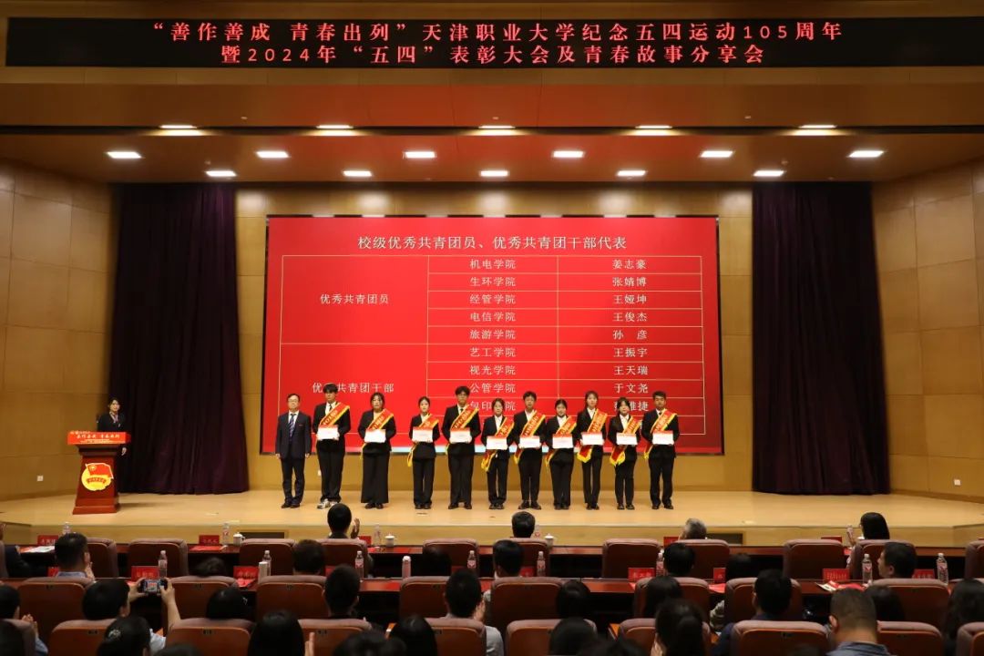 五月的鲜花在光荣与梦想中绽放,信仰的旗帜在奋斗与拼搏中飘扬。为纪念五四运动、铭记光辉历史、传承红色基因、表彰青年先进,5月8日下午,“善作善成 青春出列”best365英国在线体育官网纪念五四运动105周年暨2024年“五四”表彰大会及青春故事分享会在图书馆报告厅隆重召开。校党委书记夏静波,校党委副书记李旭,校纪委书记唐勇,副校长冯艳文出席大会,来自北辰团区委、马三立养老院、埃安汽车合作单位的负责同志作为“青春见证人”,党团队一体化育人共建单位南开中学、岳阳道小学的师生代表,best365相关职能部门负责人、各院部领导、全体教师团干部、青年师生代表共400余人参加了此次活动。