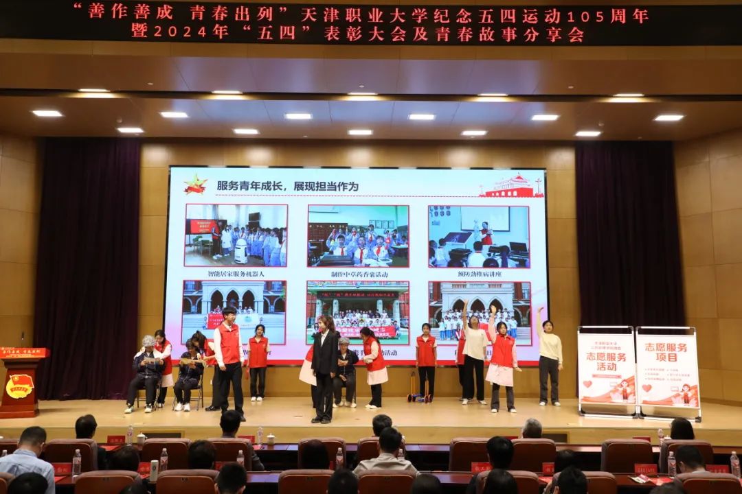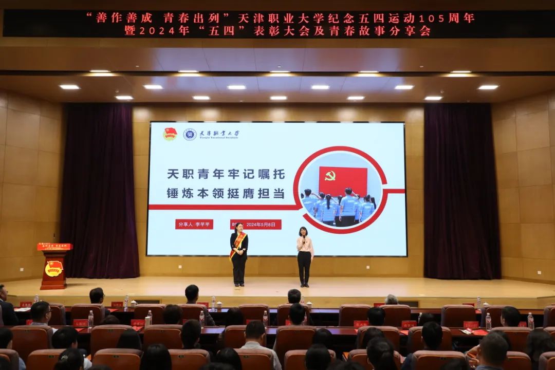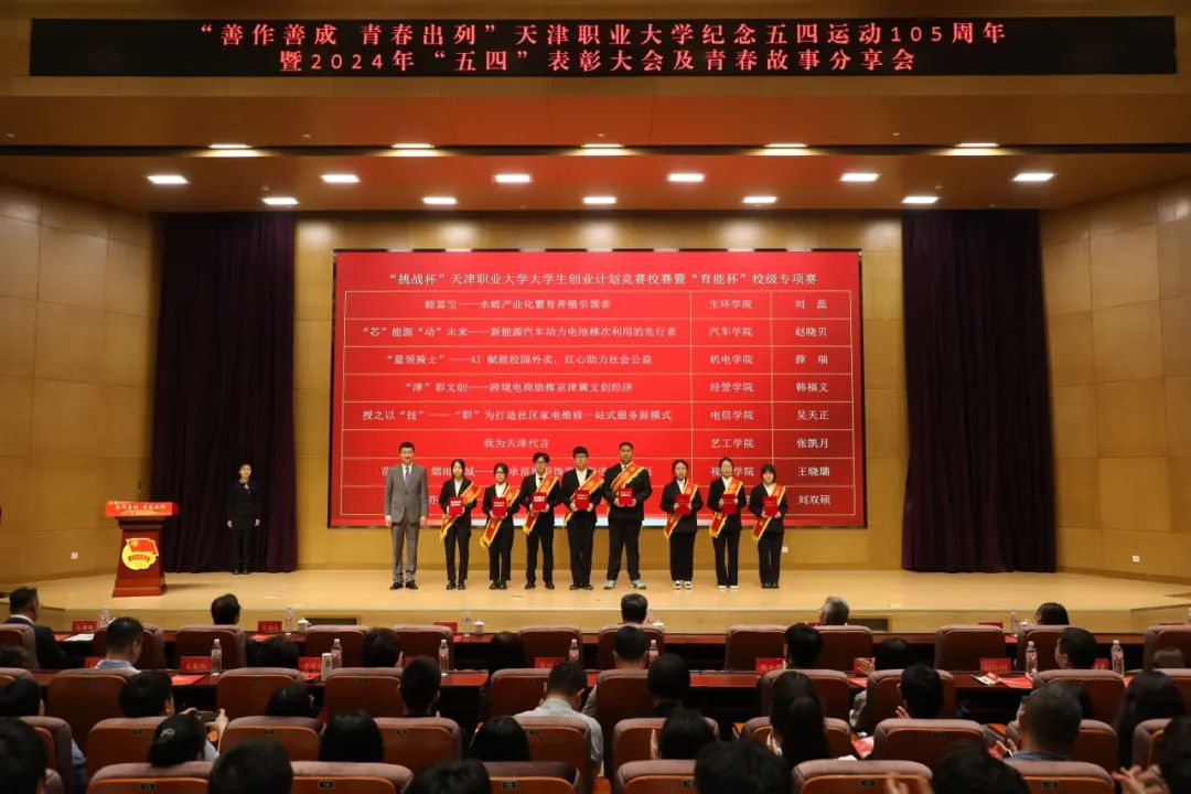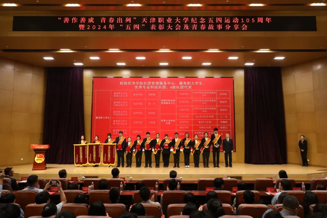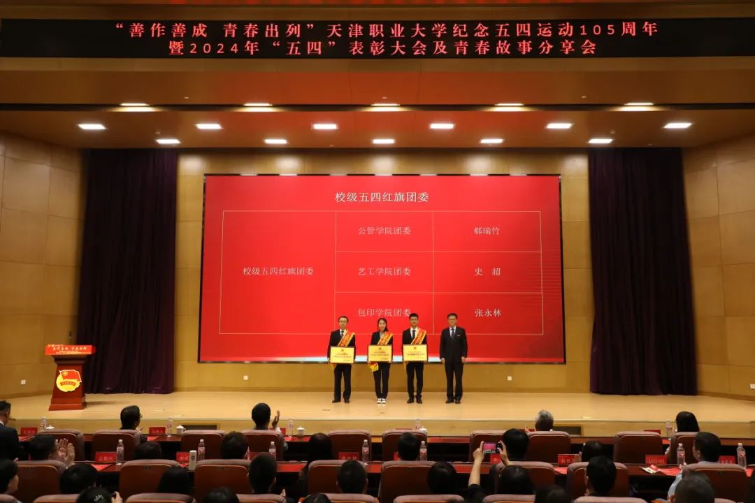 五月的鲜花在光荣与梦想中绽放,信仰的旗帜在奋斗与拼搏中飘扬。为纪念五四运动、铭记光辉历史、传承红色基因、表彰青年先进,5月8日下午,“善作善成 青春出列”best365英国在线体育官网纪念五四运动105周年暨2024年“五四”表彰大会及青春故事分享会在图书馆报告厅隆重召开。校党委书记夏静波,校党委副书记李旭,校纪委书记唐勇,副校长冯艳文出席大会,来自北辰团区委、马三立养老院、埃安汽车合作单位的负责同志作为“青春见证人”,党团队一体化育人共建单位南开中学、岳阳道小学的师生代表,best365相关职能部门负责人、各院部领导、全体教师团干部、青年师生代表共400余人参加了此次活动。