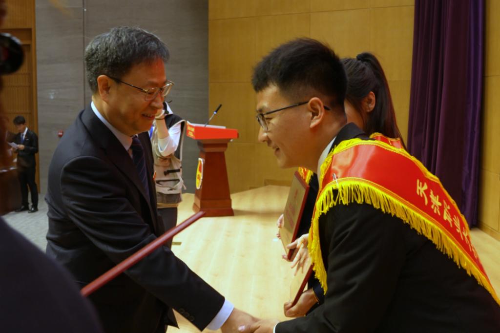 校党委副书记李旭为校级五四红旗团支部颁奖,并为“挑战杯”best365英国在线体育官网大学生创业计划竞赛校赛暨“育能杯”校级专项赛获奖项目代表颁奖