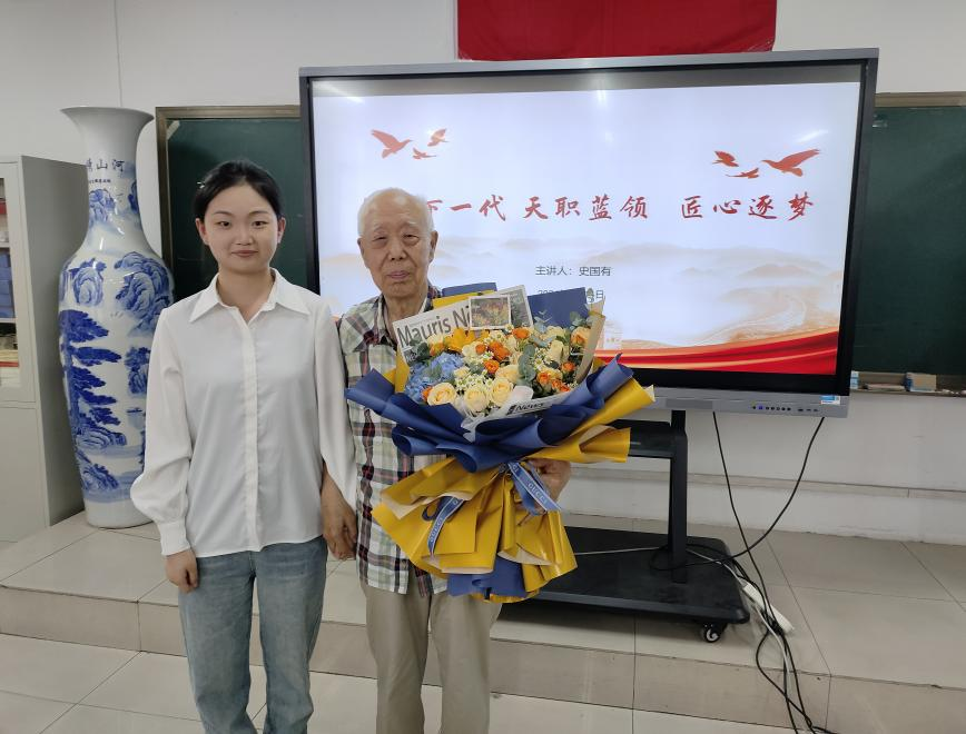 机电学院优秀学生代表为史国有老师献花