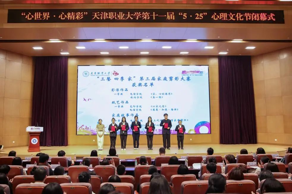 党委学工部部长郑蓓老师为“心世界·心精彩”第十一届校园心理剧大赛、“三餐·四季·家”家庭剪影征集大赛获奖者颁奖。